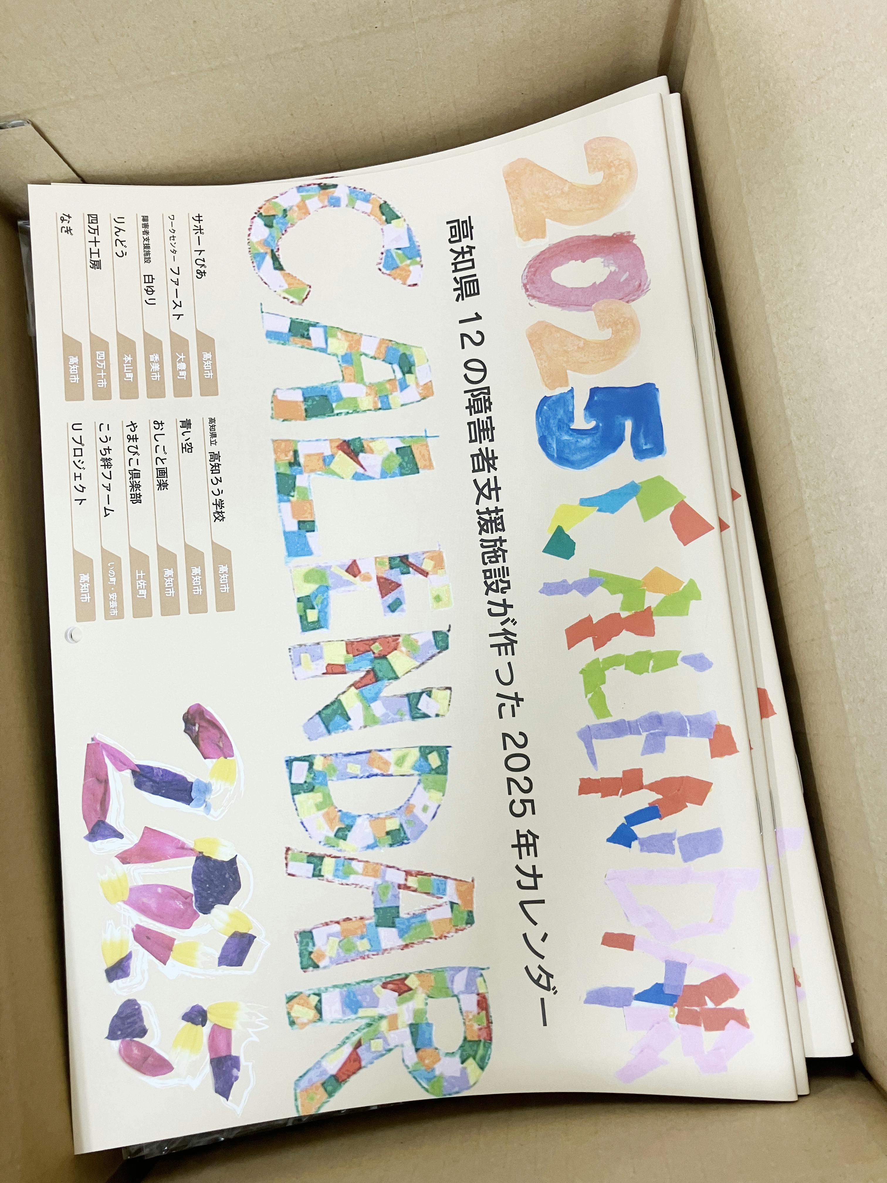 2024/09/12 11:36ご支援いただきました皆様長らく間が空いてしまいすみません。クラファンご報告の続きになります。皆様に以前ご支援いただきました「風のカレンダー2025」は予定通りの進行でデザイン作業が終わり、9月の上旬に印刷工程も完了いたしました。そして先日、ついに完成したカレンダー2025が土佐町の弊社事務所に届きました!今回は参加施設も12施設と過去最大の数。ちょうど12施設を1ヶ月ずつの担当にしています。参加いただいた施設の利用者さんたちももちろん過去最多人数。多くの方々が参加して作ったこのカレンダー、たくさんの方々のお手元に届くように願っています。上の写真は、発送準備中のもの。今週から発送作業が進んでいますので、もしかしたらもう届いている方もいらっしゃるかもしれません。当プロジェクト「今年もやります! 障害をもつ方々が作ったカレンダー!【高知県】」は、こうしてご支援いただいた皆様のおかげで無事完了となりました。皆様、いつもありがとうございます。カレンダーの到着を楽しみにしていただけましたら幸いです。 もっと見る
