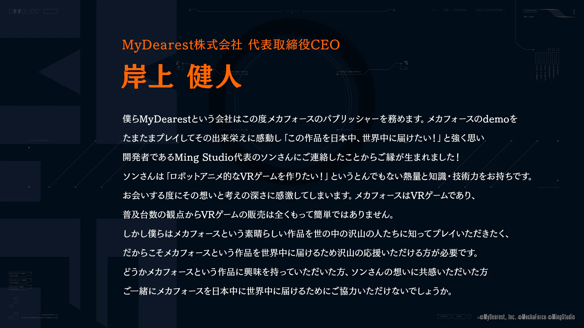 どうか、『Mecha Force』を最高のロボットゲームとして立ち上げるために、力を貸してください!!!!