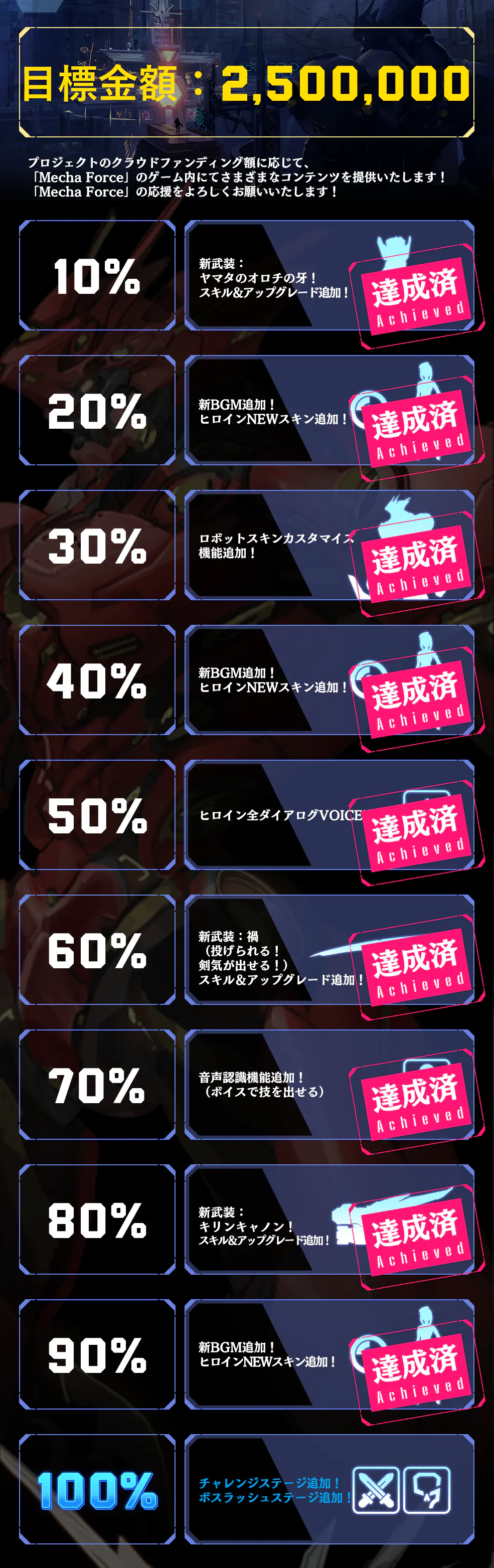 ぜひこららのストレッチゴールによって追加されるさまざまなコンテンツにもご期待ください!!