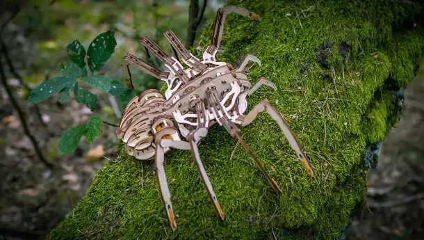 本物のクモが飼育できない状況でも、木製のクモなら可能!