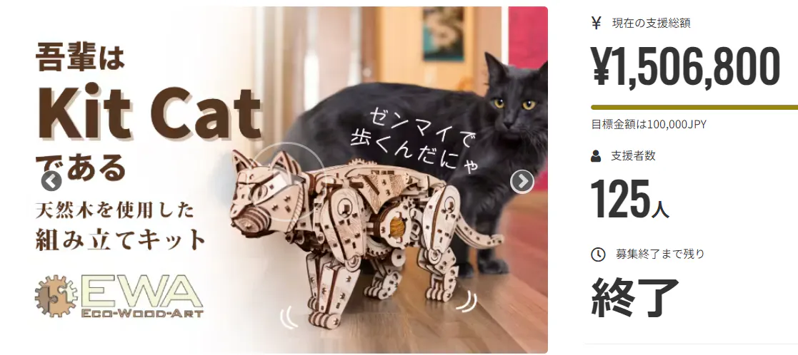 前回、Makuake、machi-yaで実施したKit Cat(猫)は目標金額を大きく上回る大成功!