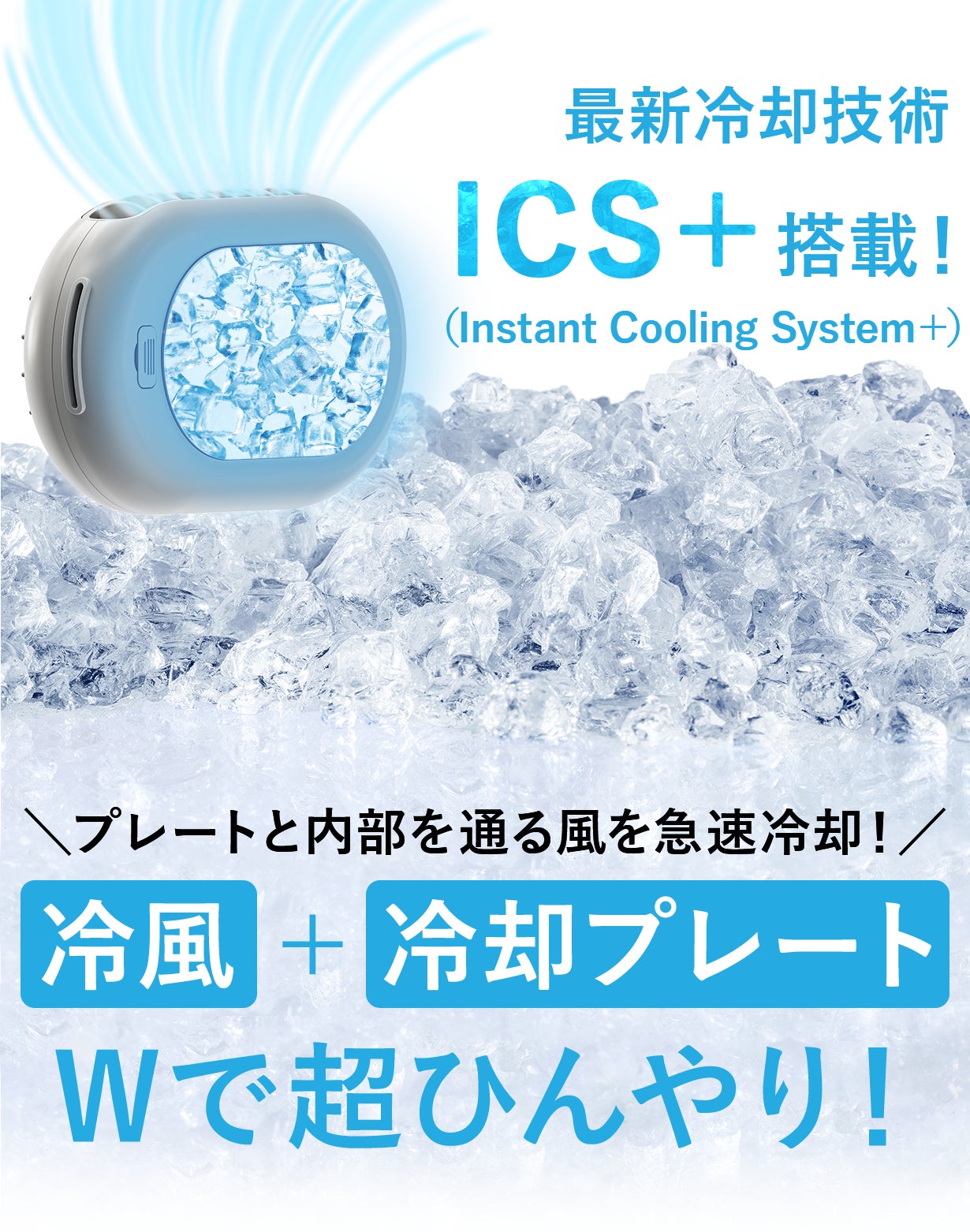 ハンズフリー・長時間使用可能・冷却機能で効率的に冷却します。