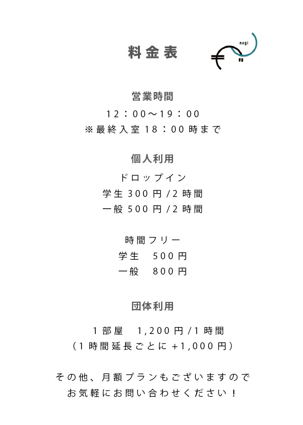 ノギが提供するものは「場所」であり、中身に色を付けるのは学生や社会人、そのときノギという箱の中にいる人たちで、色を付けていけるような空間の提供を行っています。