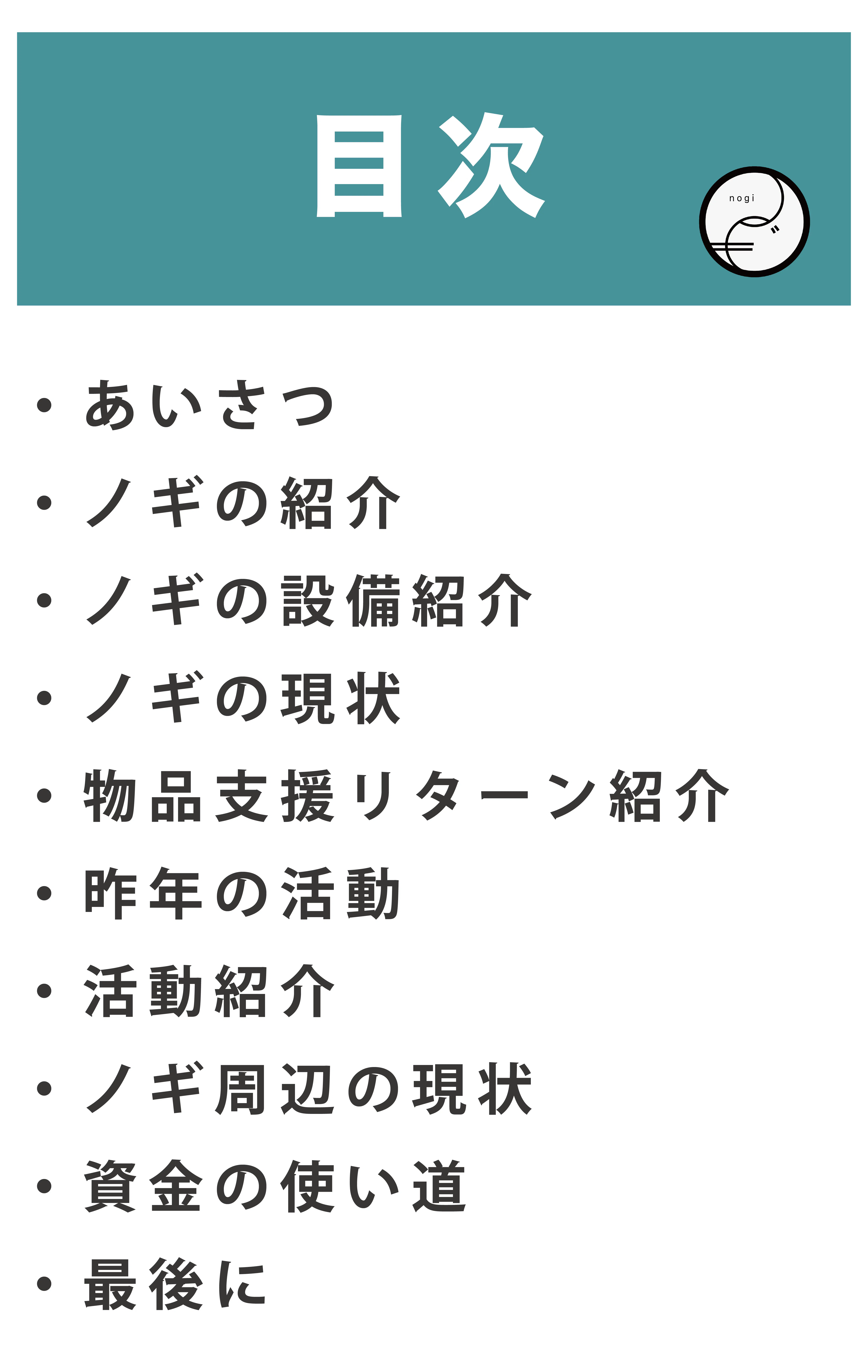 目まぐるしく変わっていく社会の中で、今回新たなメンバーを加えクラウドファンディングにチャレンジしているように、ノギはいつもお世話になっている皆さんと、新しく、面白く、そしてノギらしく歩みを進めていきたいと思っております。