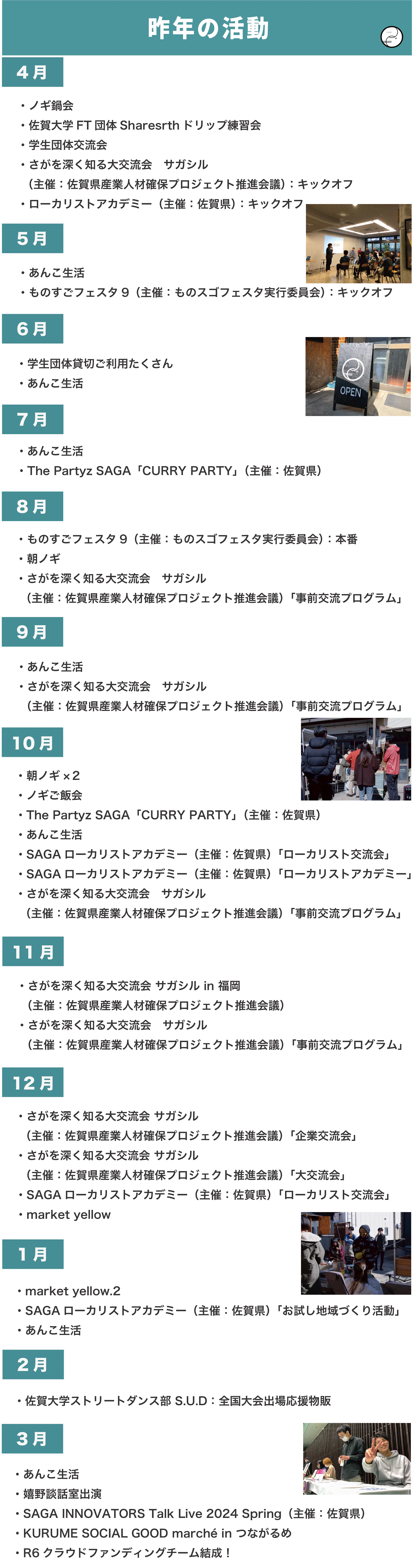 今では、様々な学生さんたちや企業さん、自治体の方と協同で企画をしています!早いうちから色々なことを学生が経験できる状況を作り、佐賀県内に面白い企画があふれ、さらに誇れる佐賀県を目指していきます。