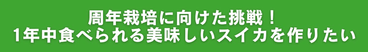 現在は夏と冬の時期に収穫をしていますが、春にも収穫できるようにすることで毎年美味しいスイカが食べられるようにします。