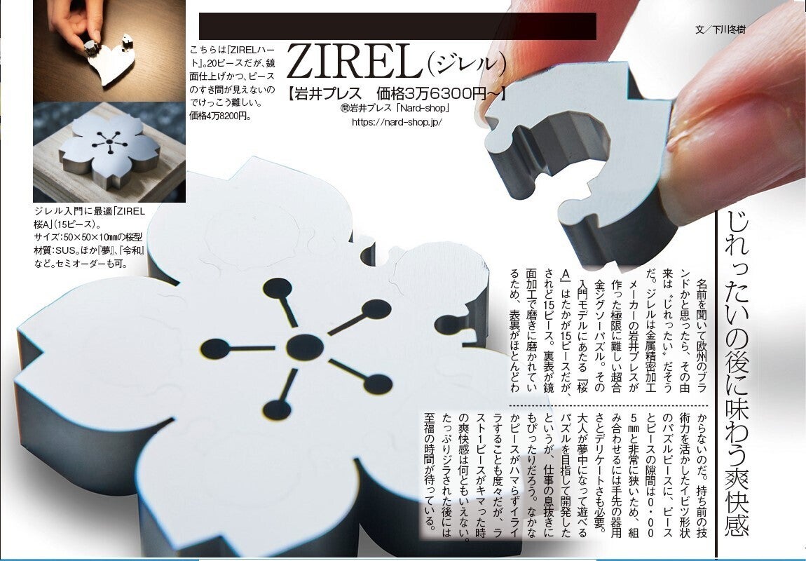 BSフジ世田谷ベースにZIRELを紹介していただき、番組内では所ジョージさんが、「この精密さと技術はすごい」と絶賛していただき、日本テレビ「行列のできる相談所」にも紹介され、パズルマニアの卓球界レジェンドと言われる、水谷隼さんにも激賞されました。また、モノ・マガジン に掲載され多くの男性心を揺さぶりました。