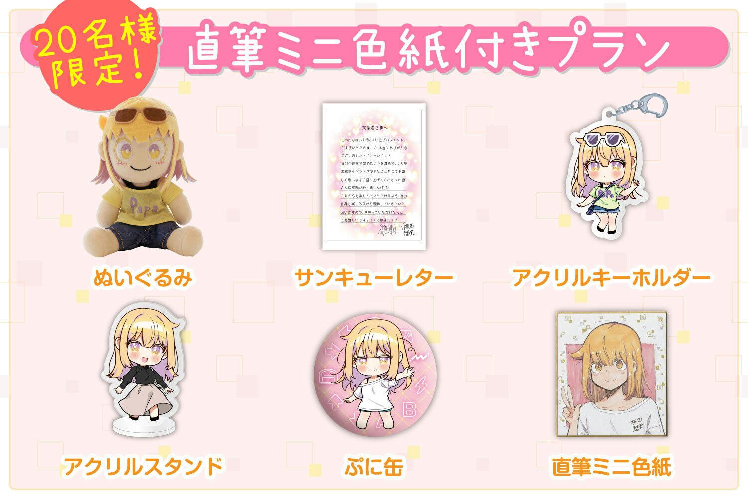 全て、クラファン企画のためのオリジナルグッズです。