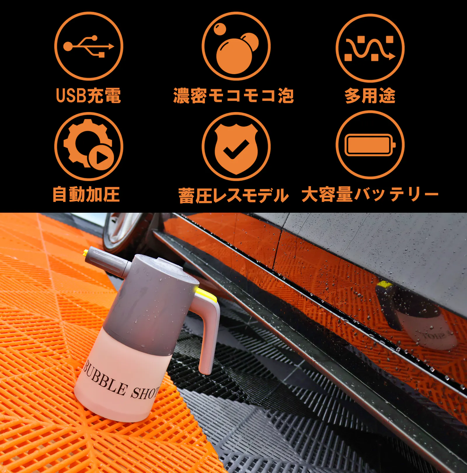 バケツで泡立てた場合では作れない、洗車専門店のような本格的な泡がお楽しみいただけます。
