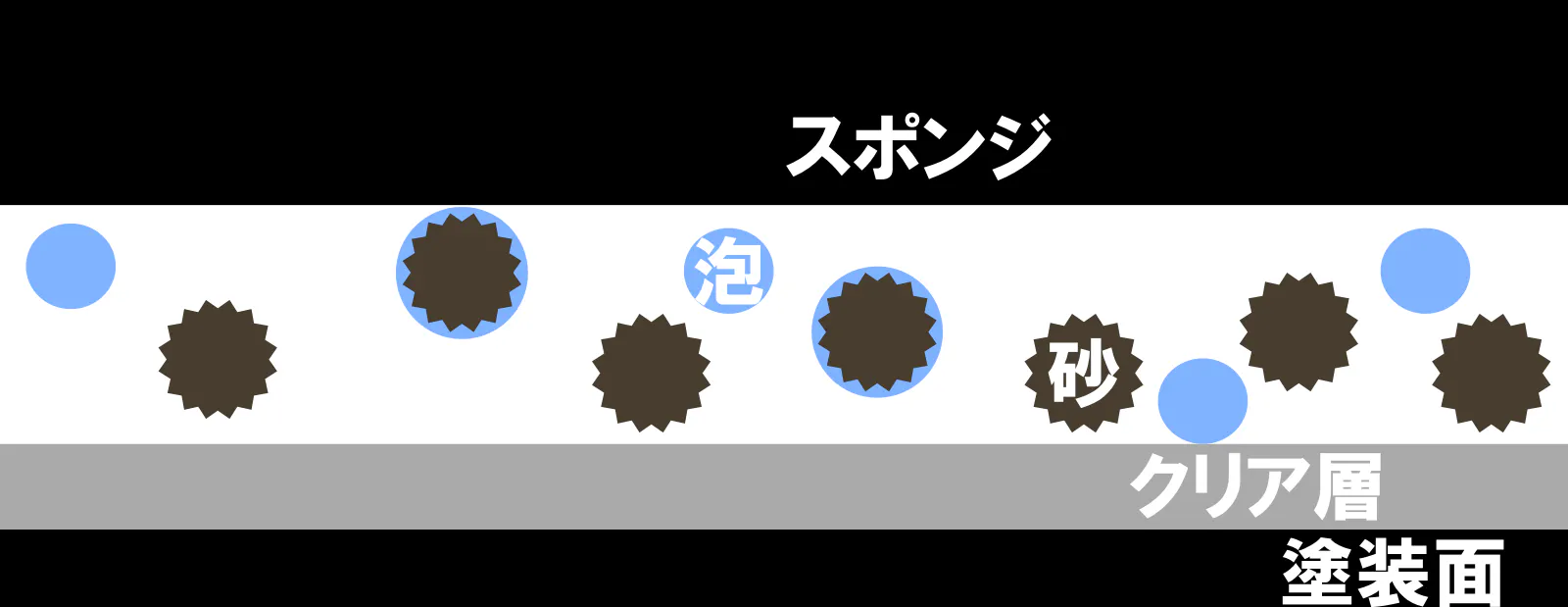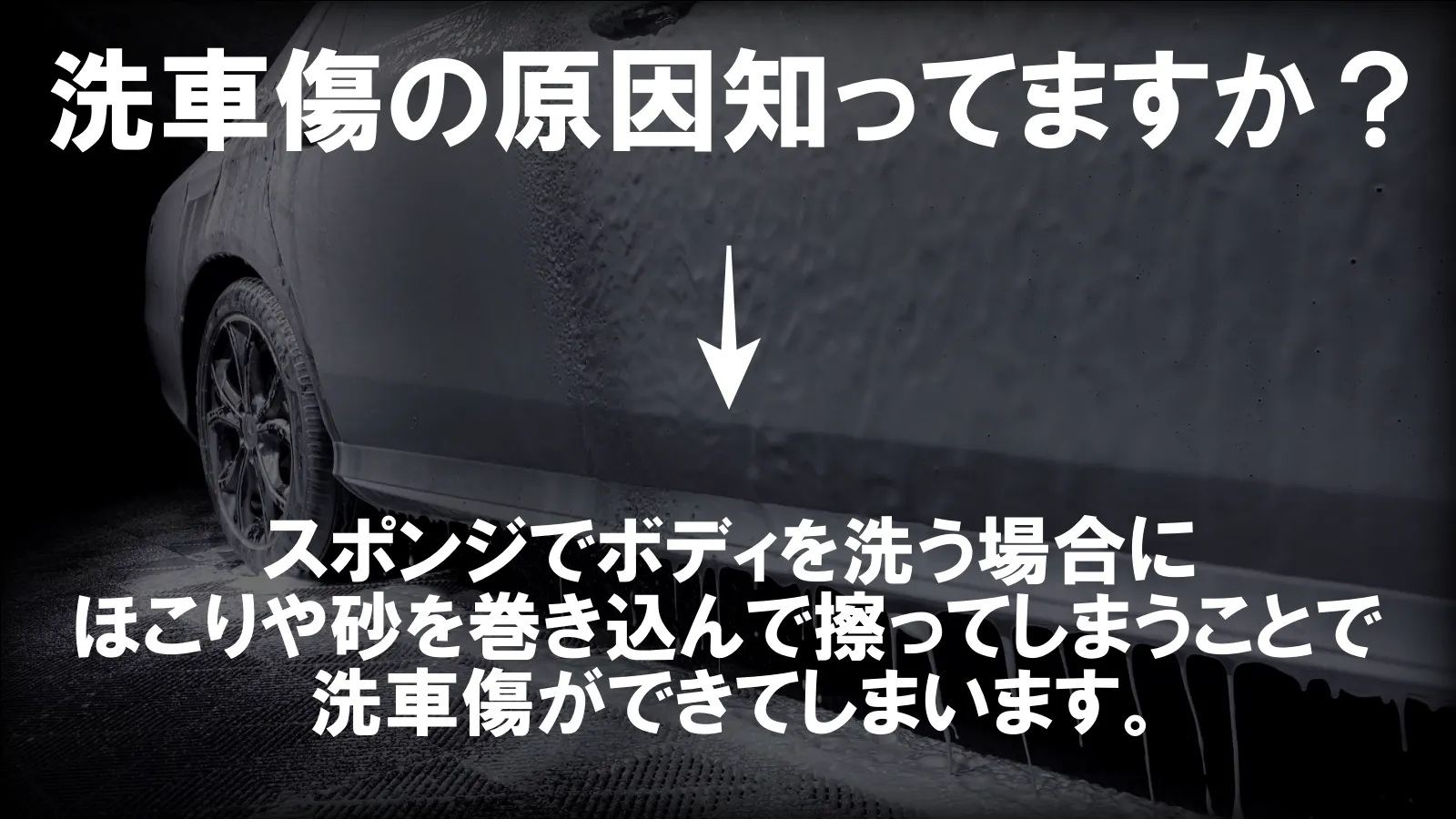 カーシャンプー等の泡が汚れや砂を包み込み極力スポンジとのクッションになり洗車傷を防止してくれます。