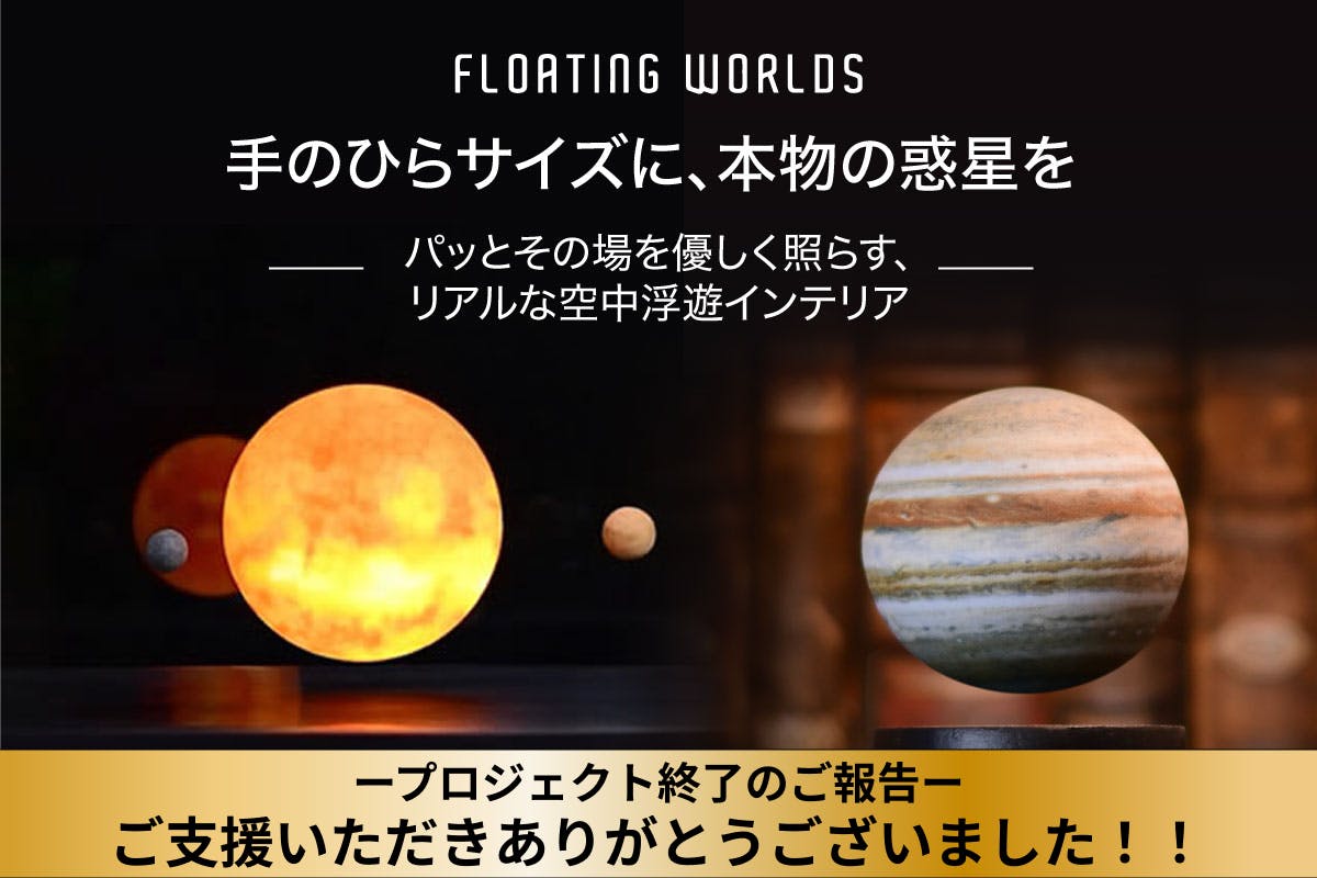 Floating Worldsに興味をお持ちの皆様、Floating Worldsを逃した方必見!8つの惑星と太陽が1つになった浮遊オブジェ、Quantum Solar Systemが本日17時〜から販売開始です!!!Quantum Solar SystemはNASA(米国航空宇宙局)とリンクした現時点の太陽惑星の位置を再現できるインテリアオブジェです。今年2月に初めてCAMPFIREでQuantum Solar Systemのクラウドファンディングを開始し、約3,000万円を集め、いろんなメディアでも話題になりました。そんな話題の太陽惑星オブジェ、Quantum Solar SystemがCAMPFIREで第3弾目の販売を本日17時より開始します!Floating Worldsでは、天体を1つに選べなかったって方も多いのではないでしょうか?Floating Worldsは1個からの購入でしたが、Quantum Solar Systemは8つの惑星と太陽が一つになったお得なセットです!Floating Worlds同様、まるで本物の惑星と太陽を手に取ったかのようなリアルな凹凸感と色味を再現しました!さらに、8つの惑星とLED内蔵の太陽が同時に浮遊するので、部屋を暗くすれば、よりリアルな宇宙空間を自宅で再現&楽しめます!NASA(米国航空宇宙局)とリンクしたリアルタイムの位置を再現できるだけでなく、自由に位置を変えることも可能!!大切なお子様が生まれた日、結婚記念日などたいせつな日の惑星の位置を再現して、思い出に浸ってみませんか?公開は本日17時です!しかも、公開期間は今月末の8月31日まで!今だけ&CAMPFIREでしか買えない、期間限定プロジェクトです!支援の準備はできていますか?いろんなメディアで話題になったQuantum Solar Systemを購入できるのは、これが最後です!皆様のご支援をこころよりお待ちしております!チーム一同 もっと見る