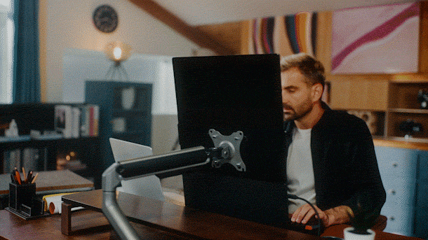 仕事から帰ったらモニターをアームにはめ込み、外出時には素早く簡単に取り外して持ち運ぶことができます。
