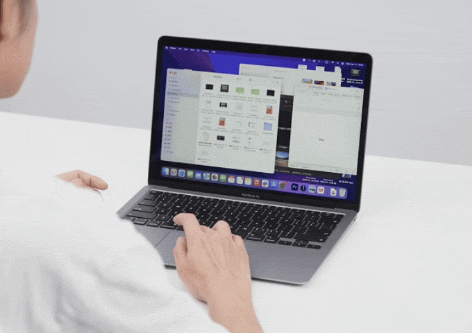 FlipGoを通常のタッチスクリーンとして使えるだけでなく、MacBookの2つ目のタッチパッドとしても活用でき、生産性を最大限に引き出します。