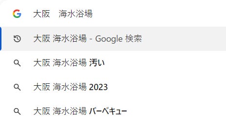 これは、検索サイトで「大阪 海水浴場」と検索した時に出る関連ワードです。
