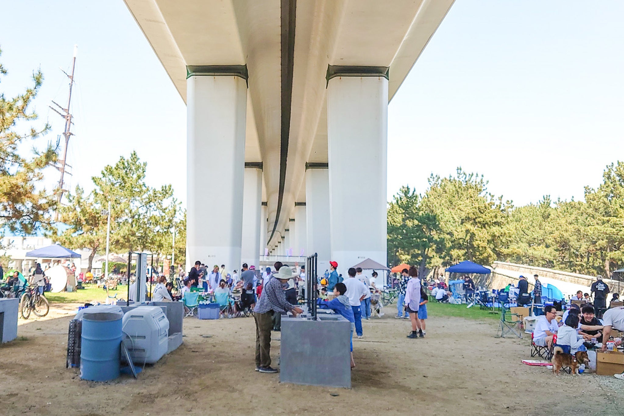 砂浜の目の前には、高速道路下を活用したBBQスペースがあります。