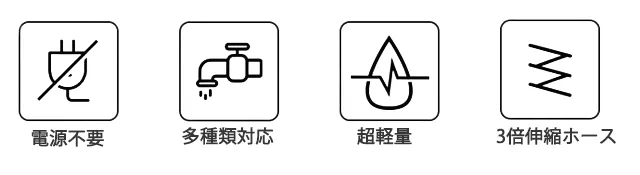 パワフルな洗浄力と電気不要のエコ設計が特徴で、超軽量のため持ち運びにも便利!!
