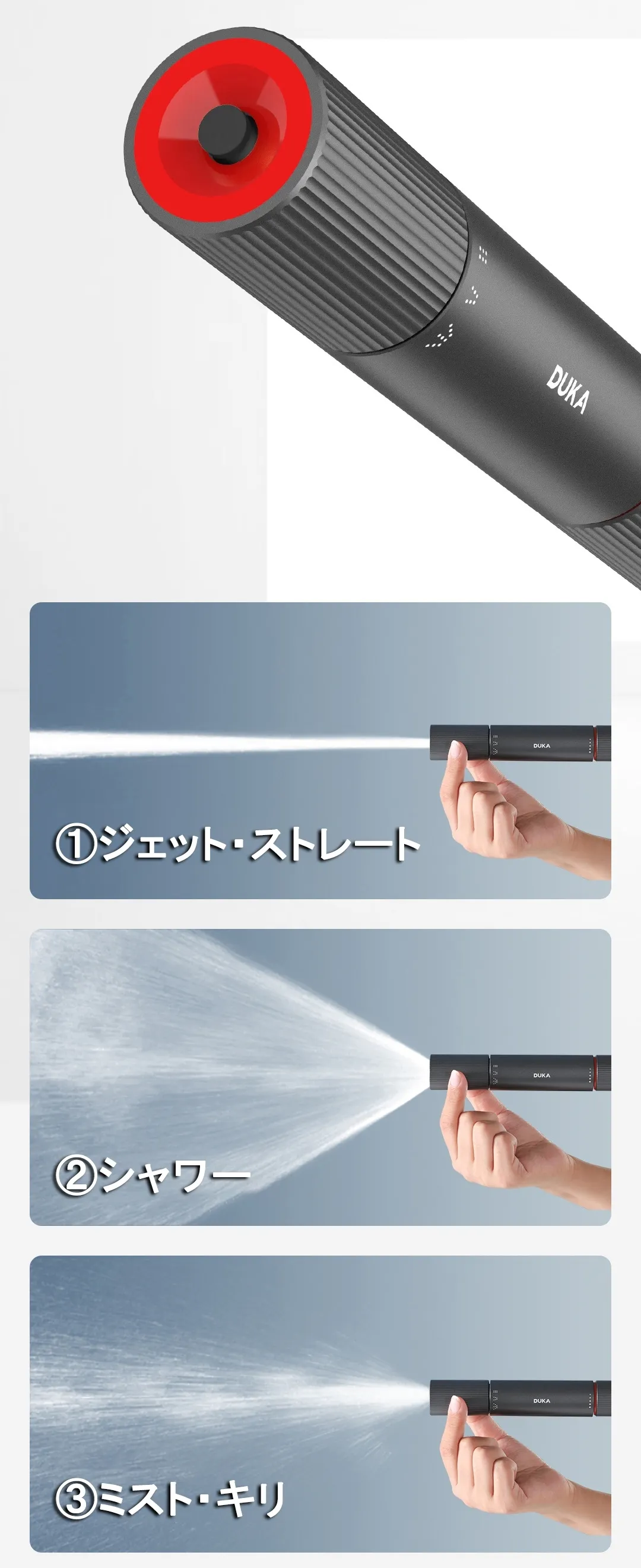 さらに回すことで自在にモードを切り替えられるため、さまざまなニーズに応じて幅広い使用が可能です。これにより、様々なシーンで便利にお使いいただけます。