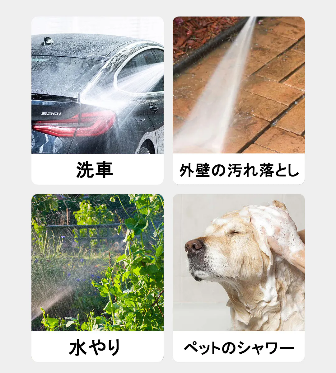 庭の植木の水やりから始まり、掃除や洗車など、多岐にわたる用途に応用可能です。