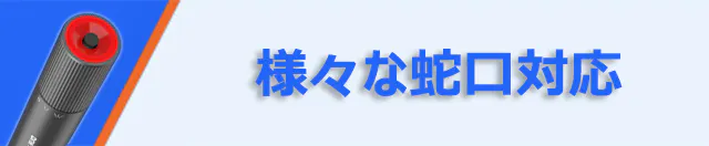 専用のメタルネジ付き蛇口ニップル、ネジ取り出しニップル、そして水栓コネクターが同梱されていますので、蛇口のタイプに左右されず自由にご使用いただけます。
