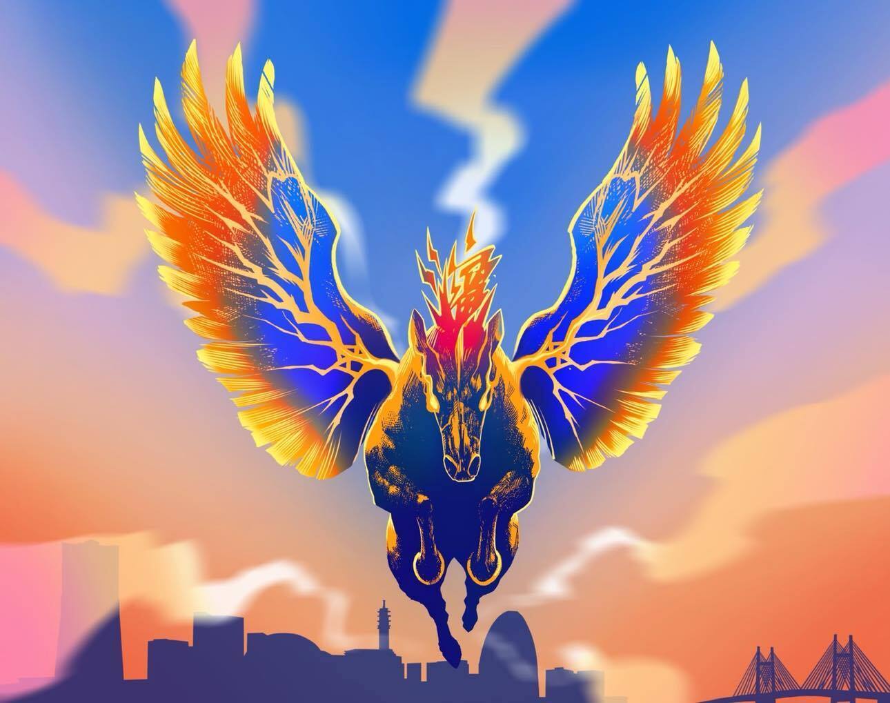 横浜は近代競馬発祥の地であることから、モチーフはペガサス(翼の生えた馬)。横浜の地から飛び立つ力強さをイメージしています。
