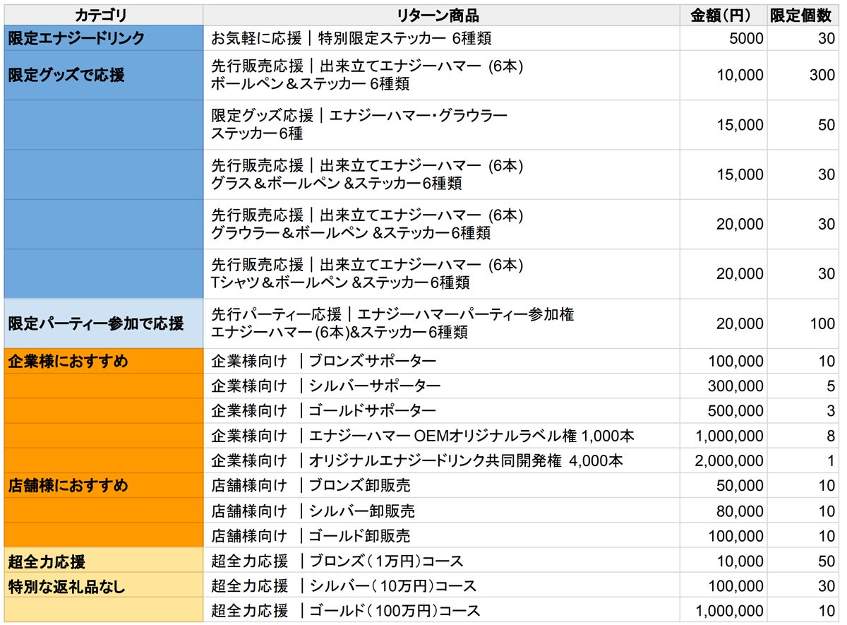・初回限定エナジードリンクの製造代