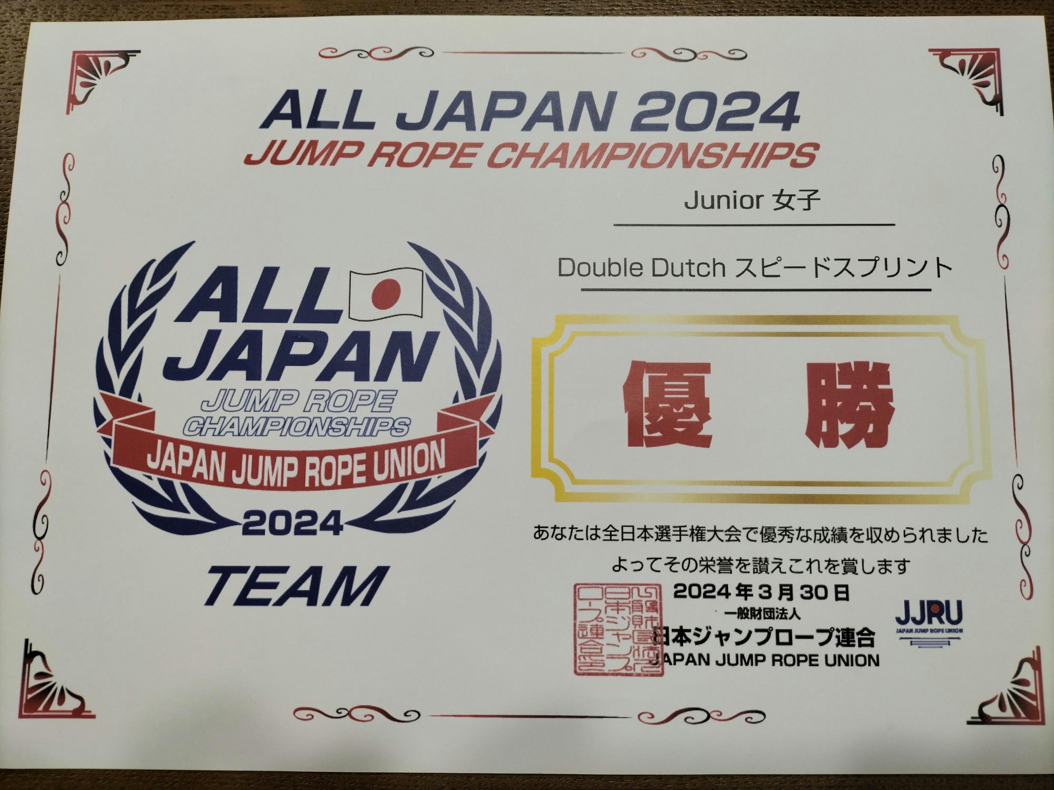 2024年 全国長縄選手権 優勝