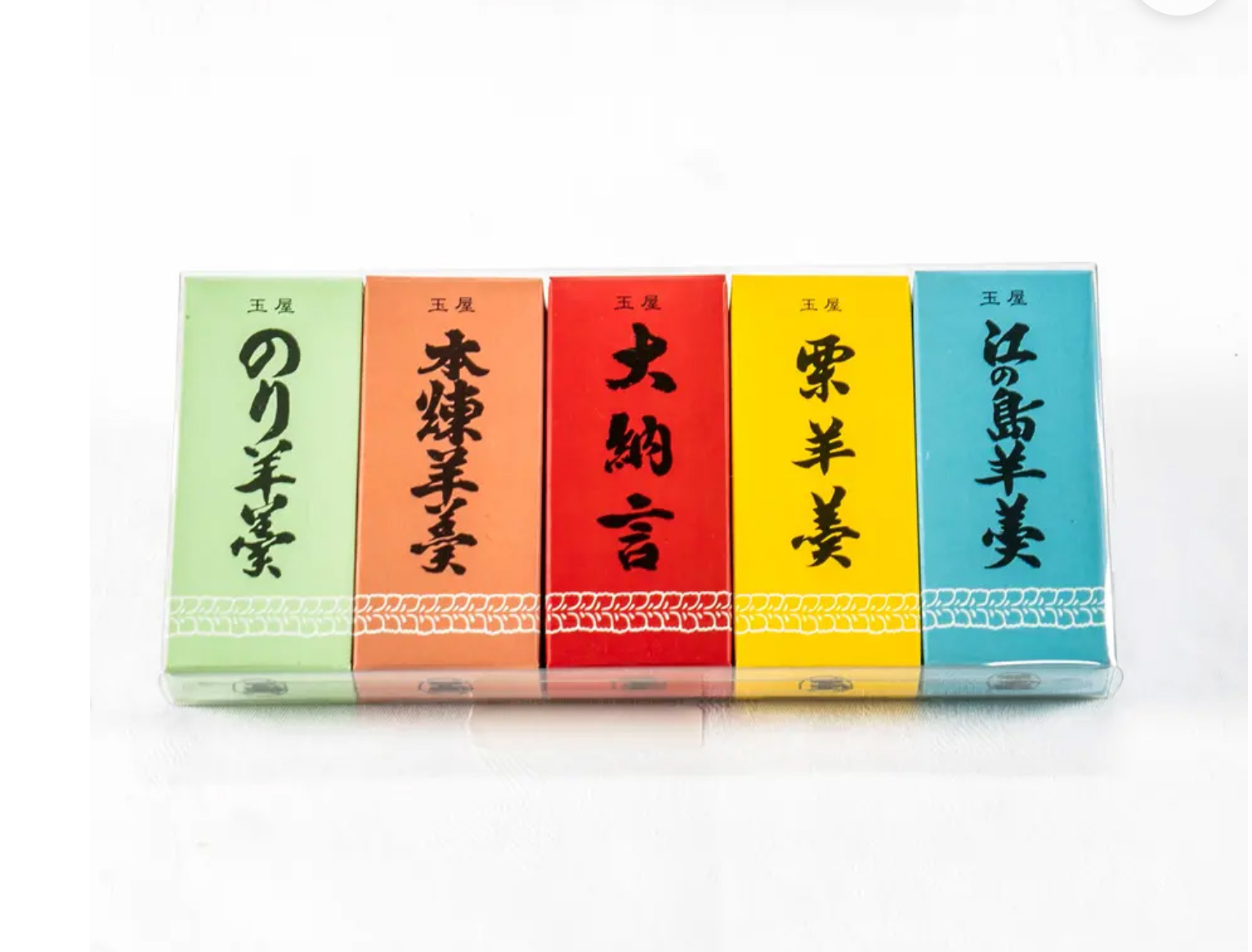 のり、栗、大納言、本煉、江ノ島のミニ羊羹が入った「ミニ5本セット」とイベント実行委員会からの感謝の気持ちを込めた「お礼メッセージ」をお送りします。