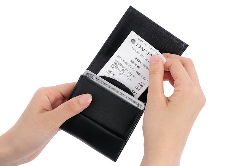 紙幣入れを簡略化すると、紙幣の枚数やレシートなど、見せたくないものまで露出してしまいます。CATAeはプライバシーに配慮し、深いポケットで紙幣をしっかり包みました。もちろん、折らずにそのまま収納できます。