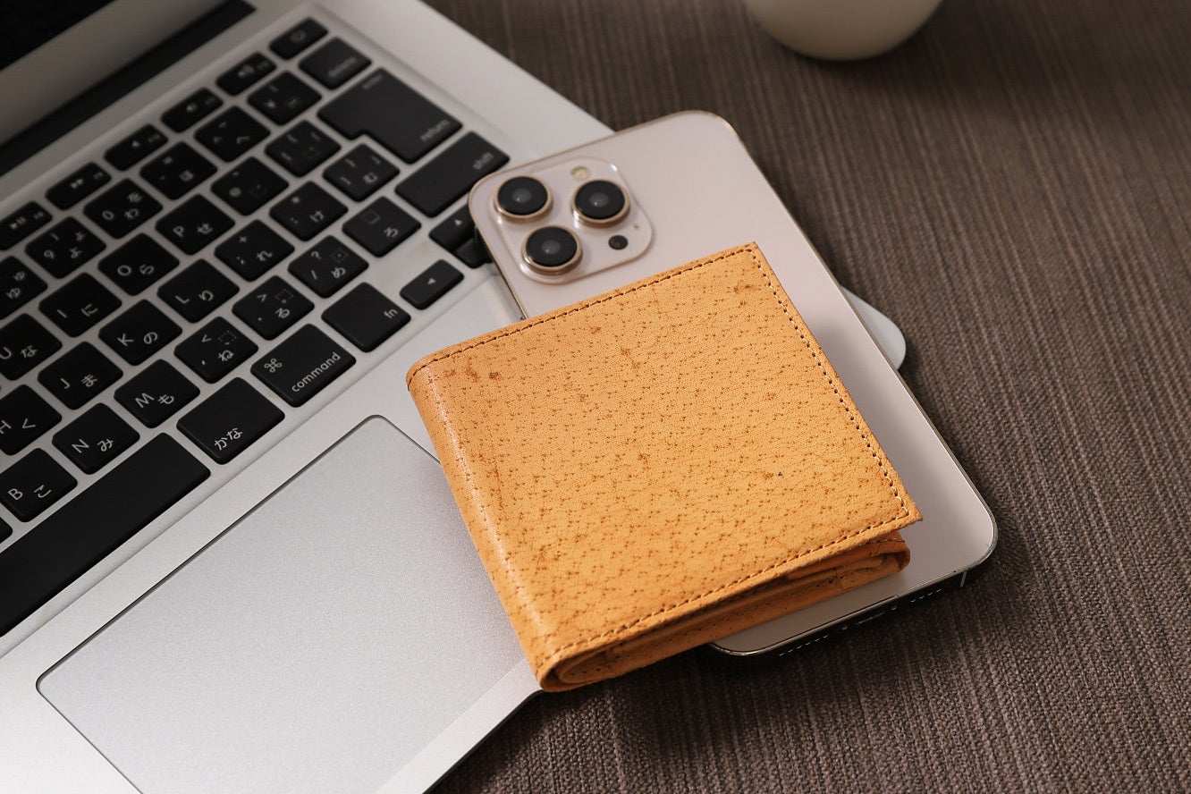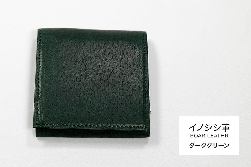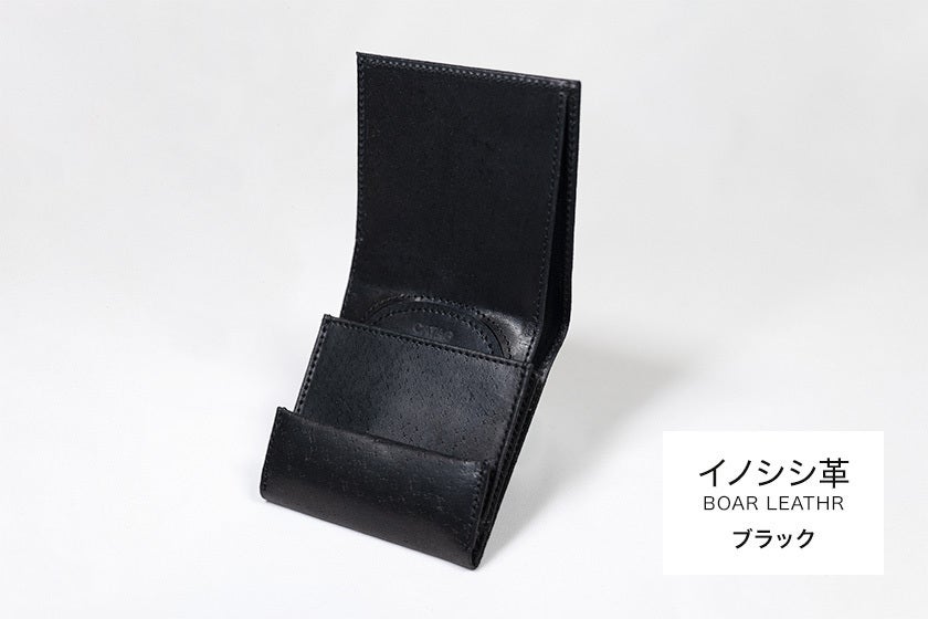「財布一つで出掛けよう」をコンセプトに開発、職人が一つ一つ丁寧につくる小さくて薄い革財布です。(日本製)キャッシュレス化で多様化した社会に適応する新構造『シェアポケット(特許取得)』を考案し、カードと小銭の収納スペースを変化させ、小銭が多い人も、カードが多い人も柔軟に使用できる財布です。日本の野生イノシシ革を使用しています。