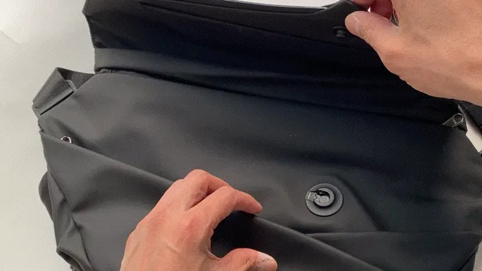 一つはその「高いセキュリティ性」です。我々はSEKKEI シリーズの海外での利用を踏まえました。台湾、日本は世界的に見るととても治安が良い国です。しかし世界には、気が付いたら背中のカバンの中身がなくなっているような地域もあります。だから私たちはセキュリティ性を重視し、フラップの開閉にはドイツ Fidlock社のボタンマグネットを採用しました。