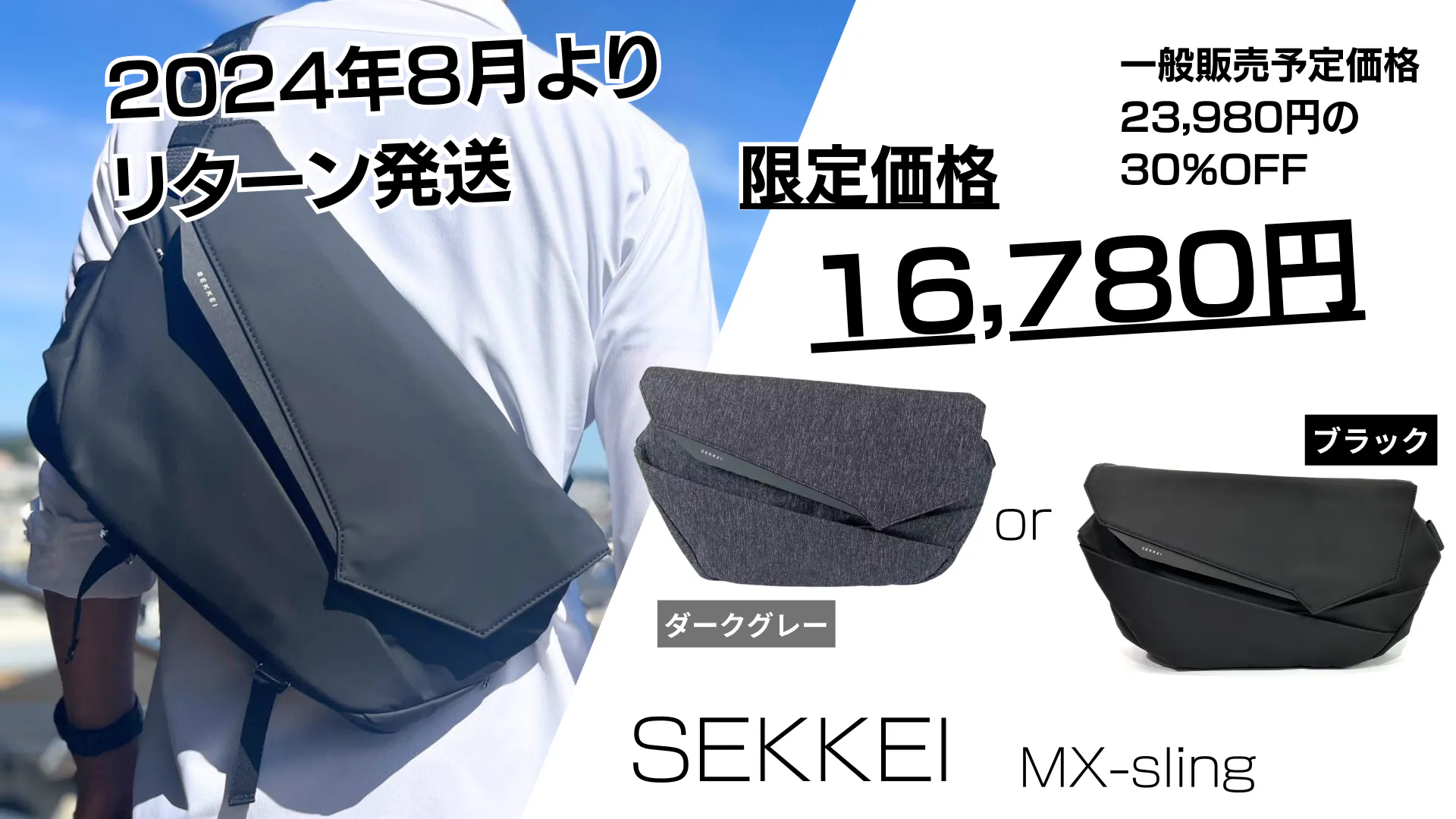 2021年8月にmachi-yaに掲載し、大好評を得た スリングバッグ SEKKEI 初代モデル 「SEKKEI M-sling」 のリリースから2年、前作「SEKKEI S-sling」 の発表から1年が経ちました。ご支援いただいたの皆様の声を反映し開発チームで試行錯誤を重ねて改良し、前作から更にstylishに、更に機能的になって「SEKKEI MX-sling」 が満を持してのリリースです!