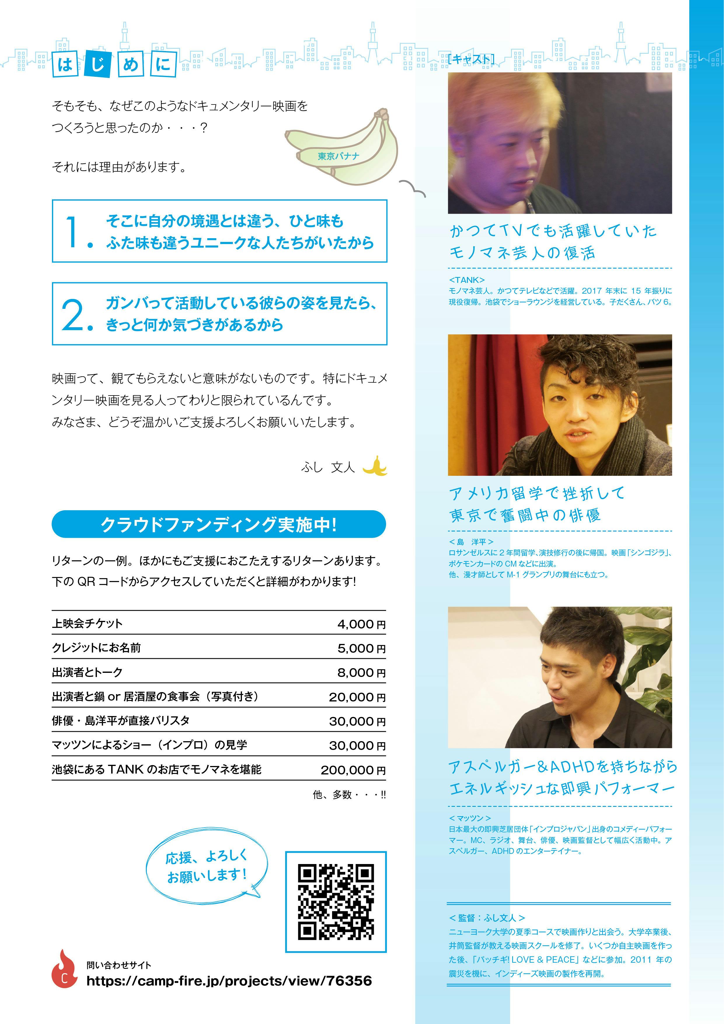 100,000円…上映会チケット+エンドクレジットにお名前+作品Blu-ray+島洋平の英会話レッスン(またはバリスタ)+マッツンのインプロショー