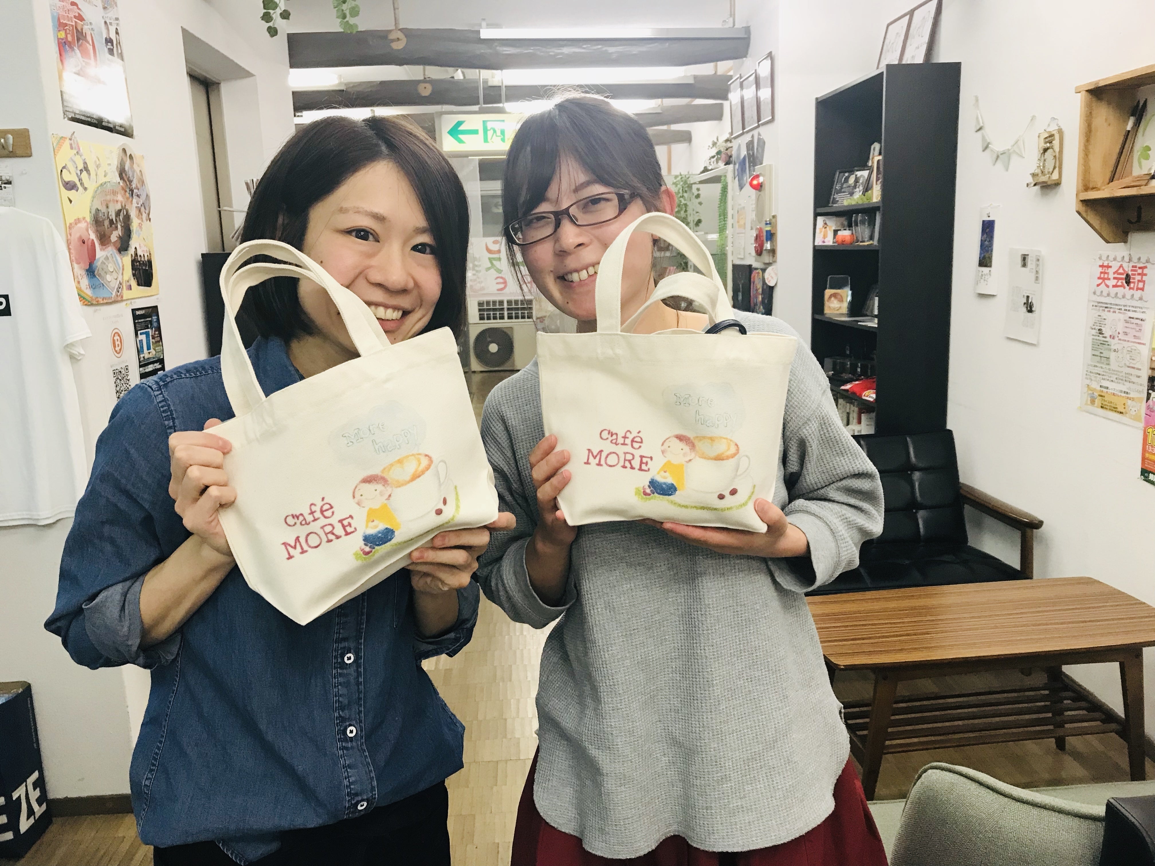 応援して下さった皆様へのお返しとして、お礼の品をご用意しています。MOREで使えるチケットや、友人に協力してもらい完成したオリジナルバッグなど、数種類ご用意しております。ぜひお好きなリターンをお選びください♪