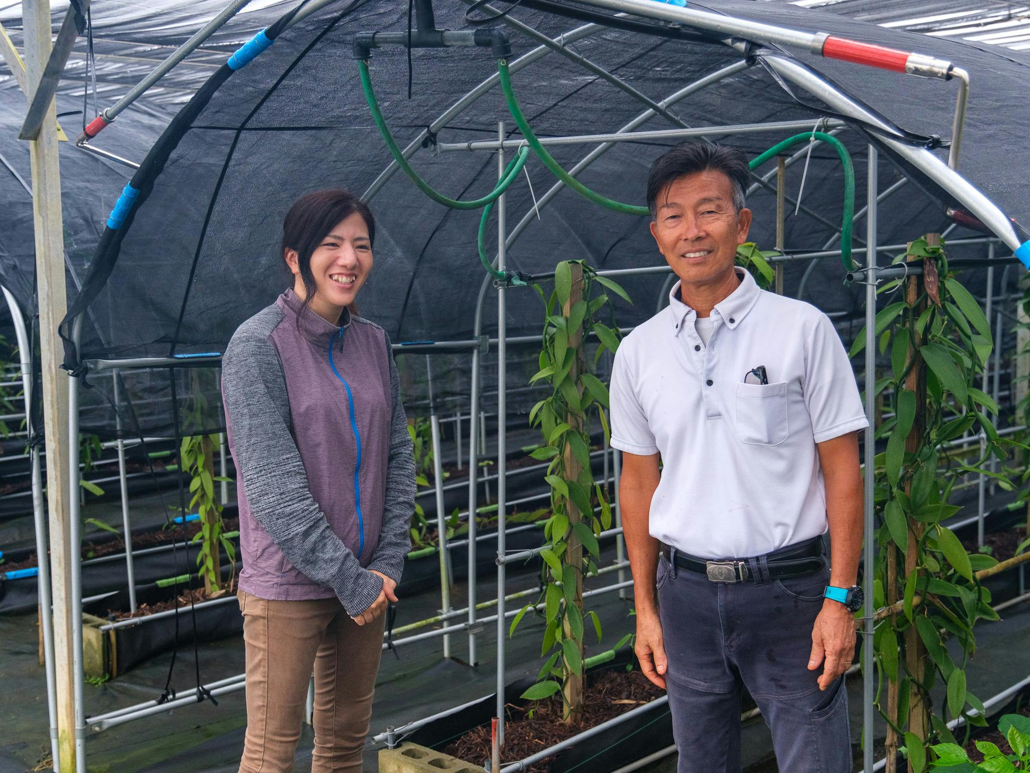 長浜さんとはもともと知り合いで、ラン栽培だけじゃなくバニラも始めたと聞き農園にお邪魔すると、びっくりするくらいの量を栽培してて(笑)家庭菜園かと思ったら本格的ですごいな!と思ったのが最初の印象です。