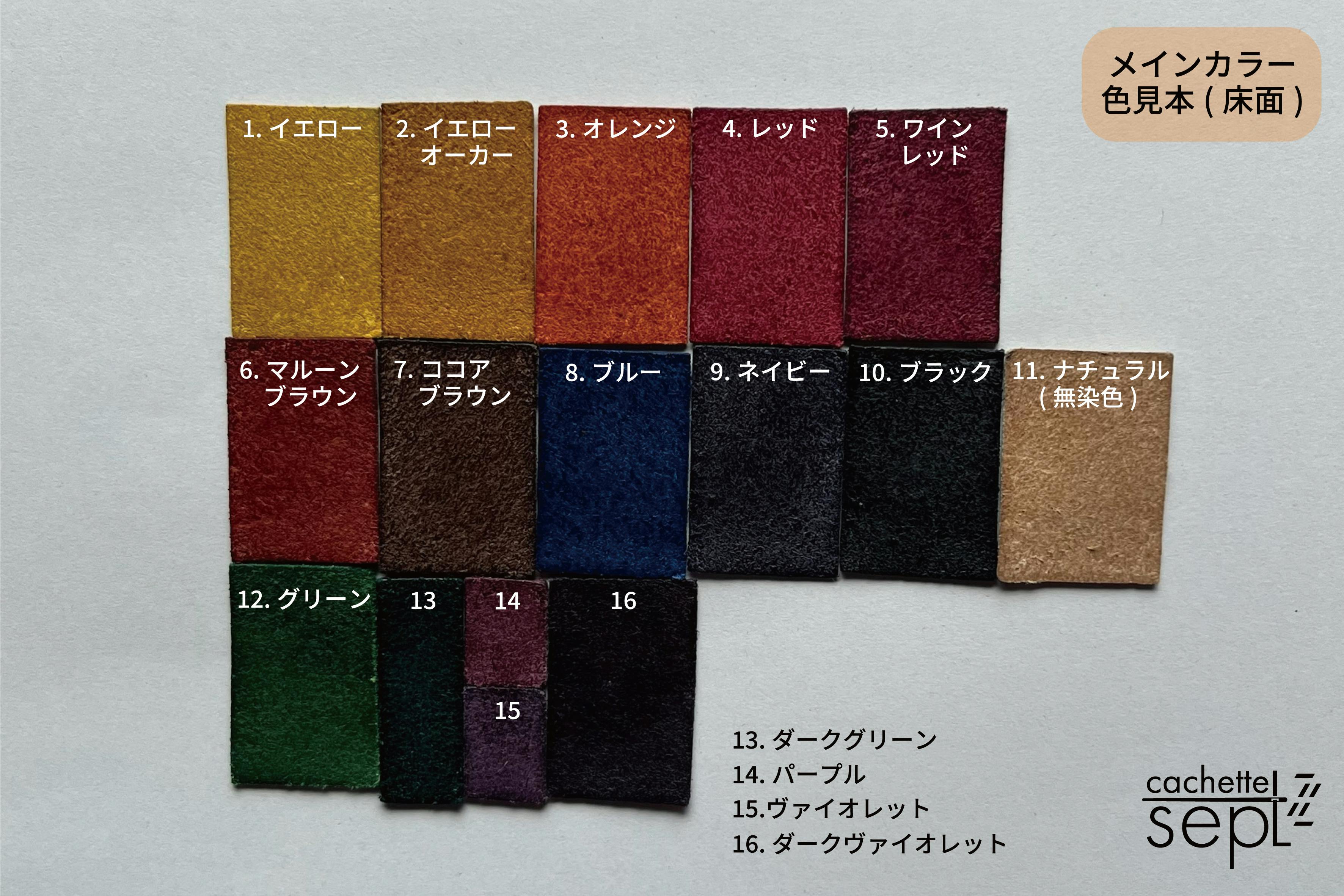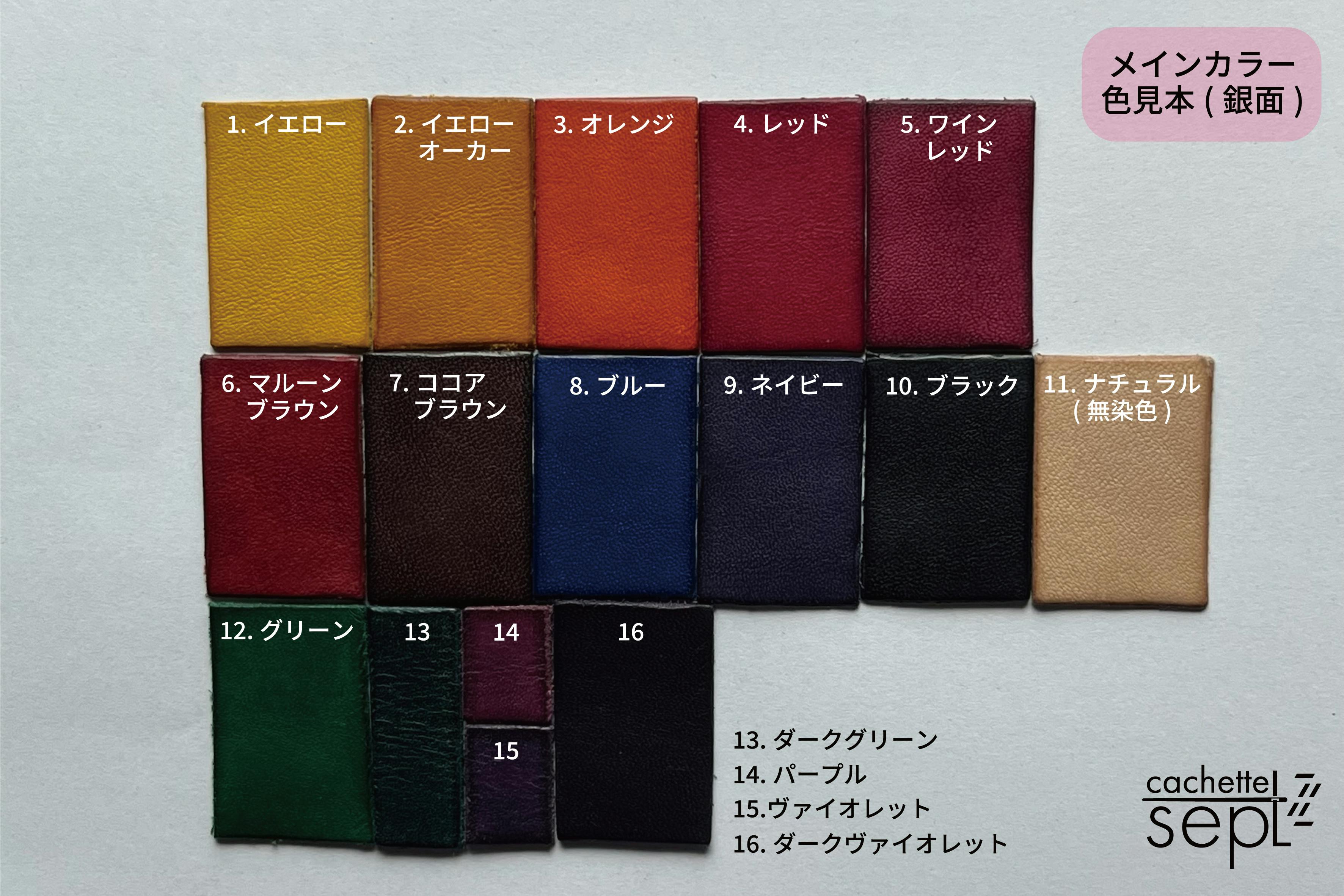 世界中から厳選した、高品質で綺麗な肌目をしている革を染料100%で手染めしております。生成りの革から染色後、仕上げに防汚コートを施して、マット~半艶程度に磨きあげております。