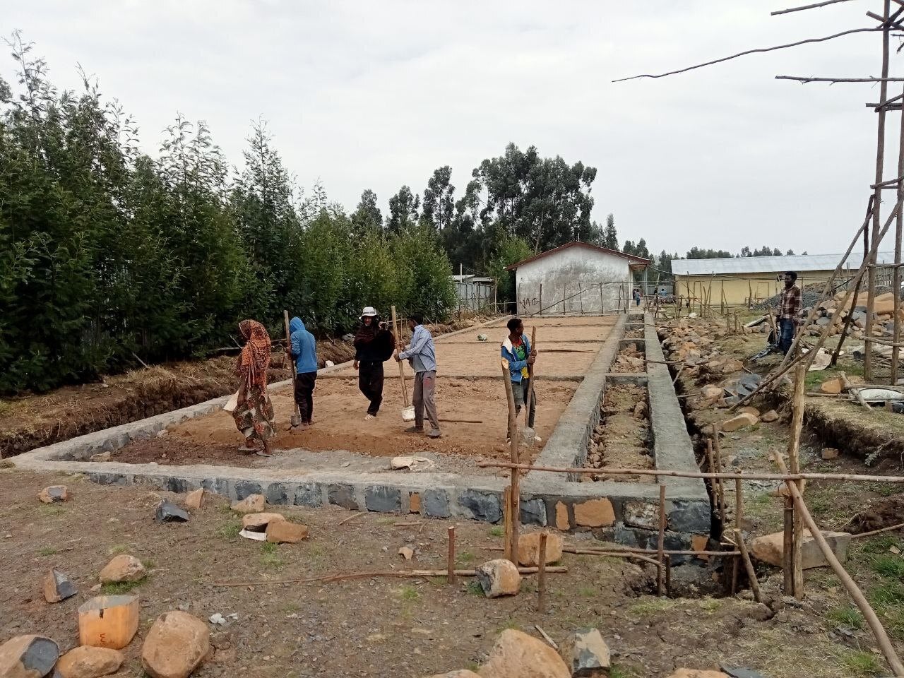現在は、4つの内、2つの校舎(No.1~2)(教室6つ)と食堂及び職員室は完成しており、既に生徒たちが学んでいます。そして、もう1つの校舎は工事のステップ1~4の内の、ステップ1の基礎工事まで終わっています。