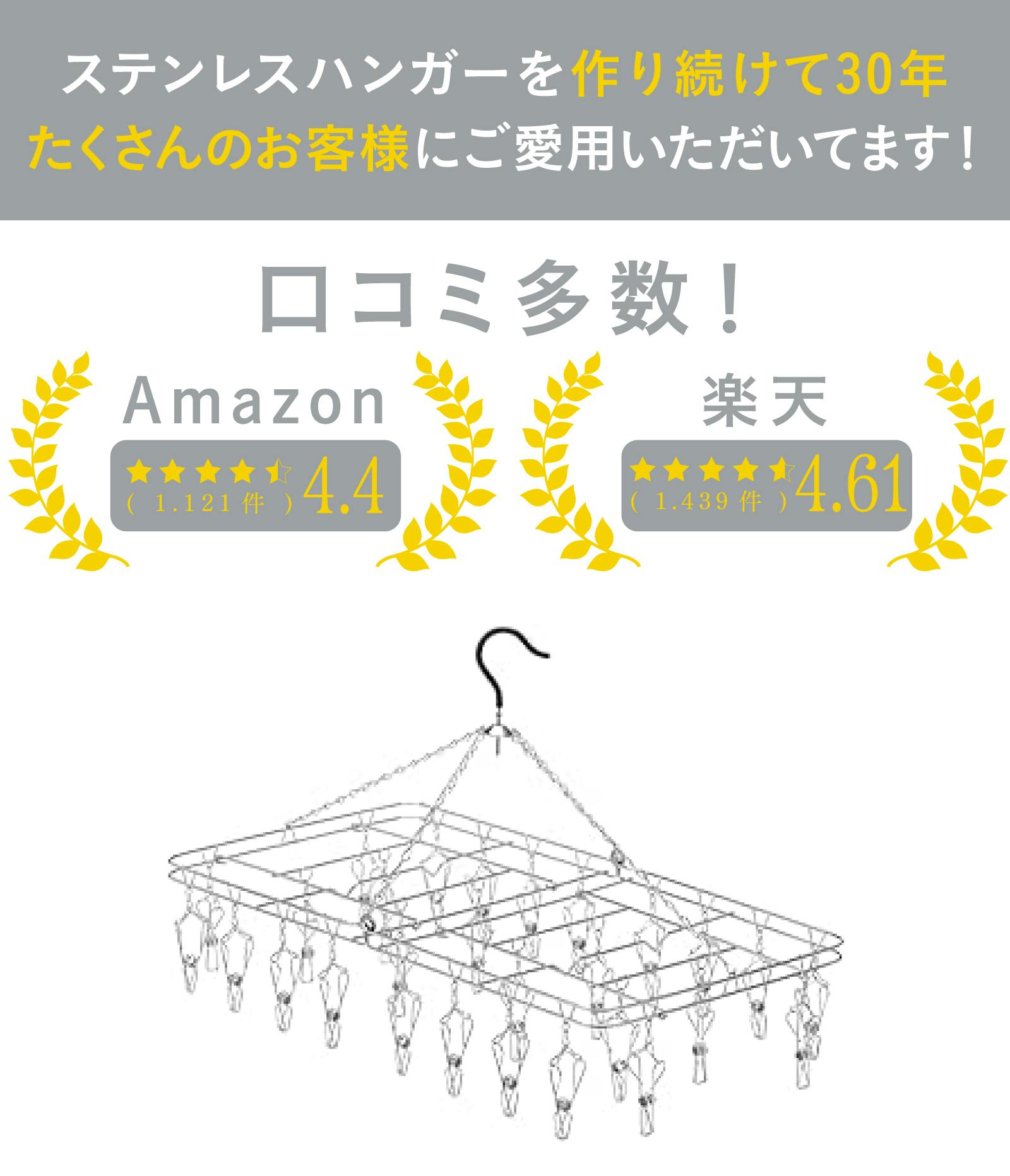 ステンレスハンガーを販売して30年!1万回の耐久試験もクリア!長く使える丈夫なハンガー軽さ、つまみやすさ、価格のすべてを改良!お客様からいただいた声を生かして開発練馬の町工場の歴史と技術を結集し、こだわり抜いた逸品!