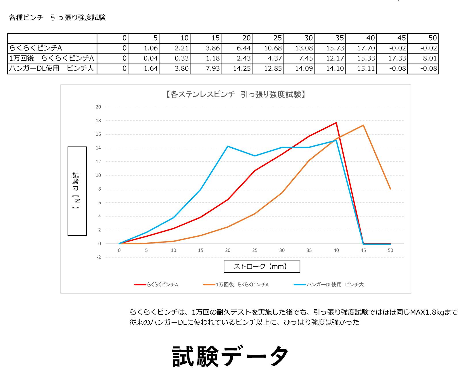 さらに、公的な試験機関にて1万回のテストを実施し、ピンチの掴む力が衰えないことを証明できました。他にも独自に引っ張り試験を実施し、従来よりも高性能に改良できたことを証明しました。