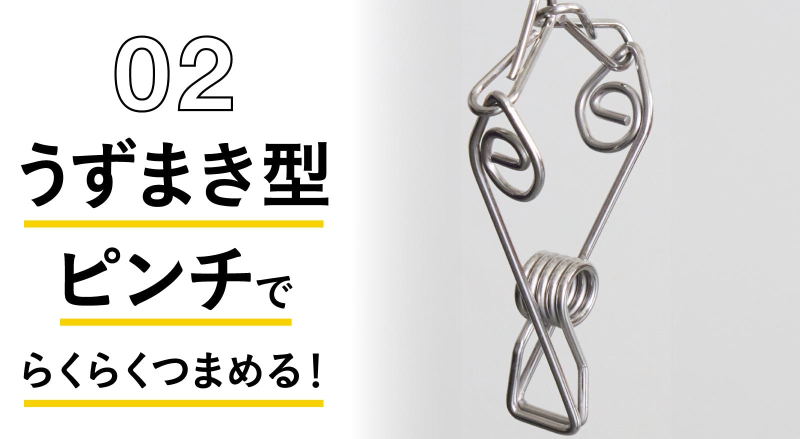 大木のらくらくピンチステンレスハンガーでは、つまむ部分をうずまき状の形にアップデートし、挟む力はそのままに小型・軽量化に成功しました!