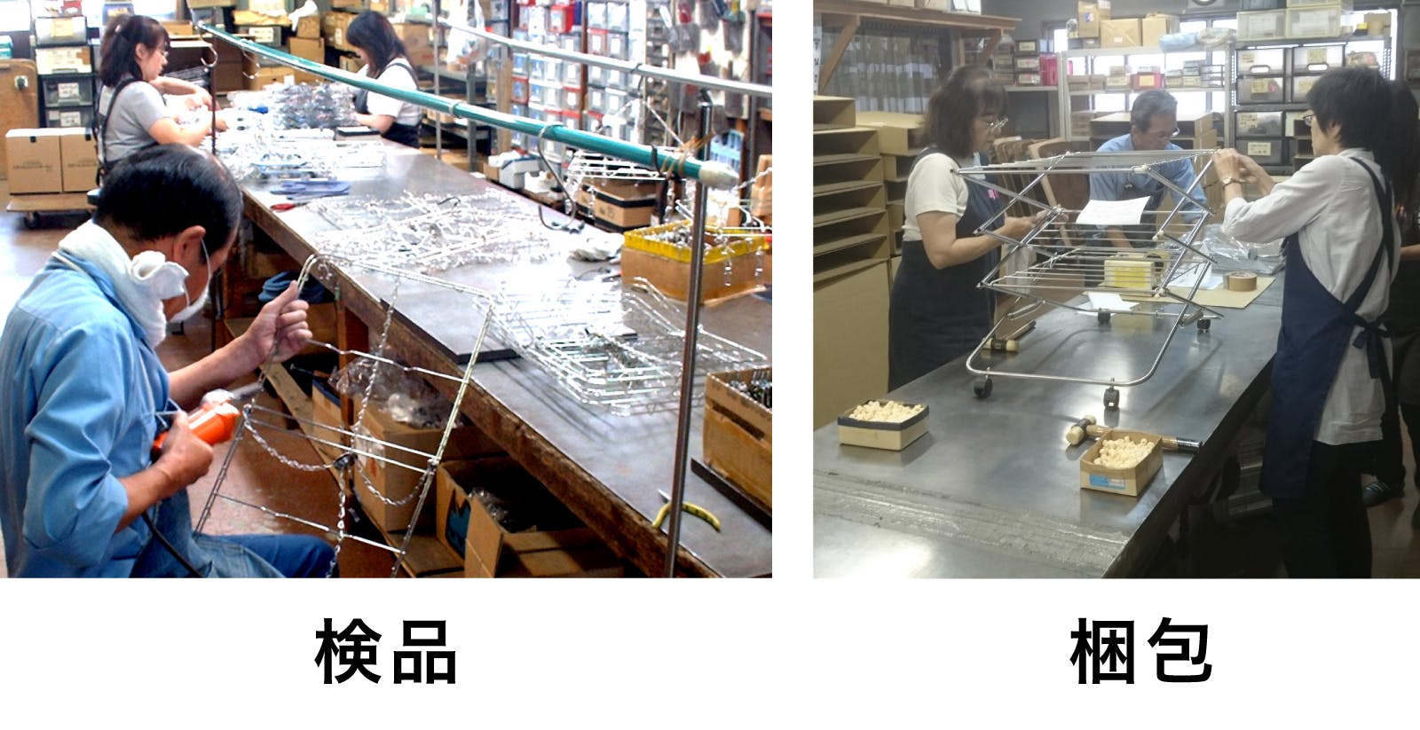 金属素材の特徴を生かし、独創性をモットーに、職人がひとつひとつ丁寧に作り上げ、検品から梱包までの工程を全て人の手を通し、心を込めてお客様に届けます。
