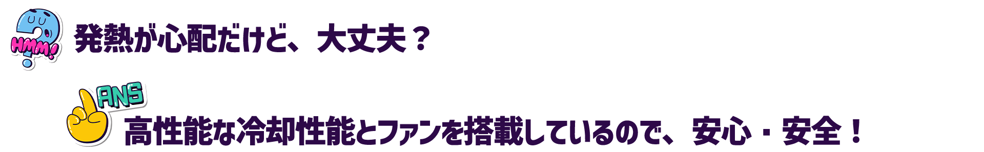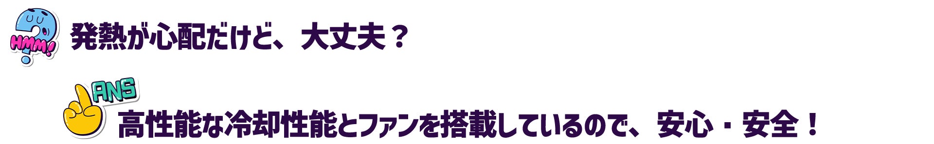 スリムなボディに5180mm²の巨大なVC*放熱プレートと冷却ファンを搭載。総ヒートシンクフィンの面積は7053m㎡ と大きく、広範囲の熱伝導性が向上し、背面が熱くならずに長時間の使用可能です。