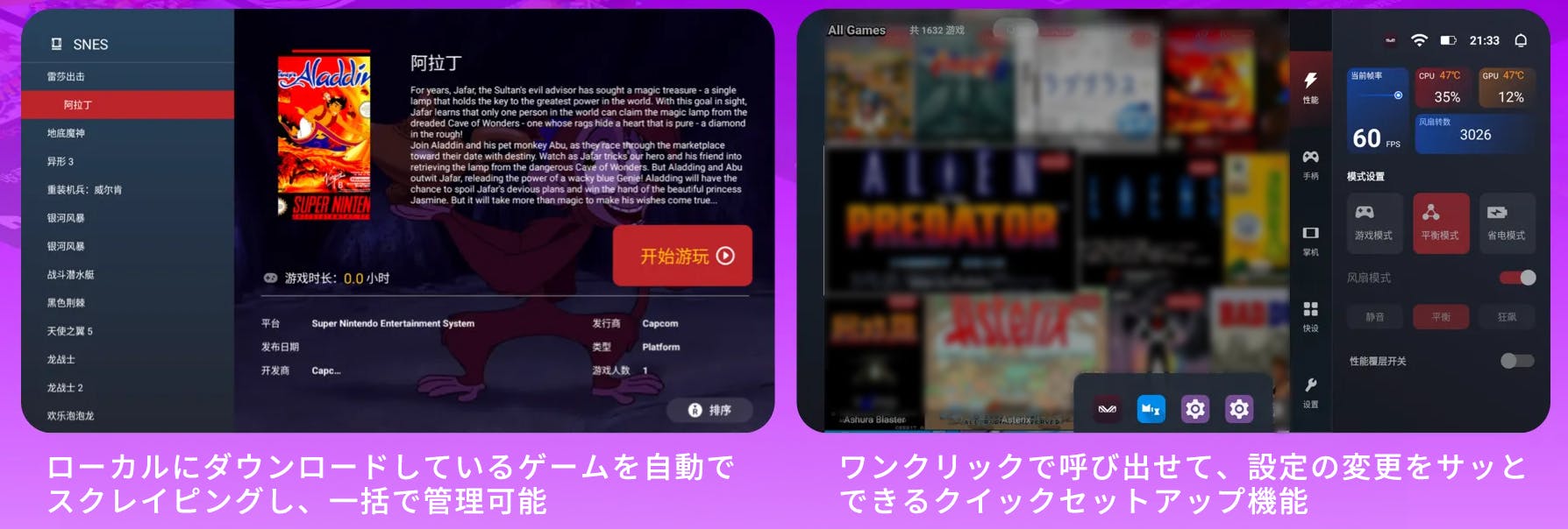 ボーダーレスなガラスカバーとの組み合わせにより、1080P IPSスクリーンは超高精細で没入感のある視覚体験を提供します。色の再現性と輝度性能は、ゲーミングデバイスの領域に新たな基準をもたらしました。