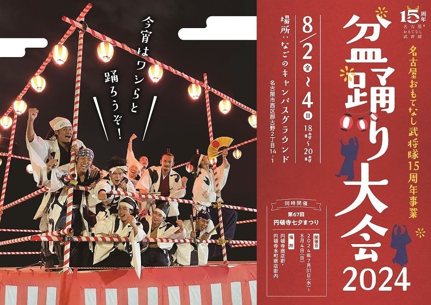 さらに昨年からは円頓寺商店街の「円頓寺七夕まつり」の開催中に「名古屋おもてなし武将隊 盆踊り大会」を開催することにより、街全体で大いに楽しめる盆踊り大会に進化を遂げた