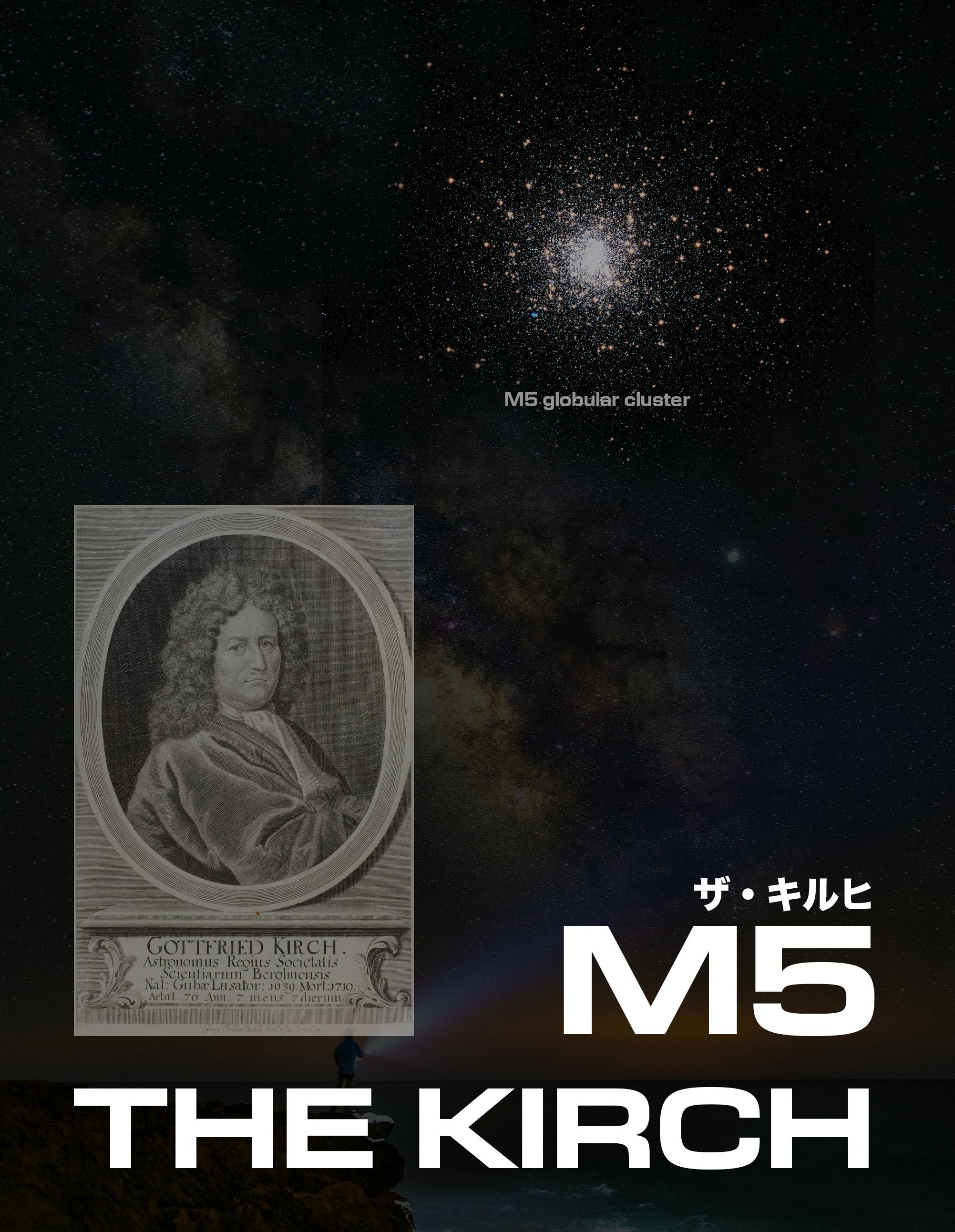 ZEROOの腕時計には宇宙に関係する名前を与えています。時間と宇宙空間に共通する永遠性、無限性への憧れからです。ヘビ座に近くに輝くM5球状星団を発見したドイツの天文学者であるゴットフリート・キルヒ博士にちなみ、M5をTHE KIRCH(ザ・キルヒ)と名付けました。