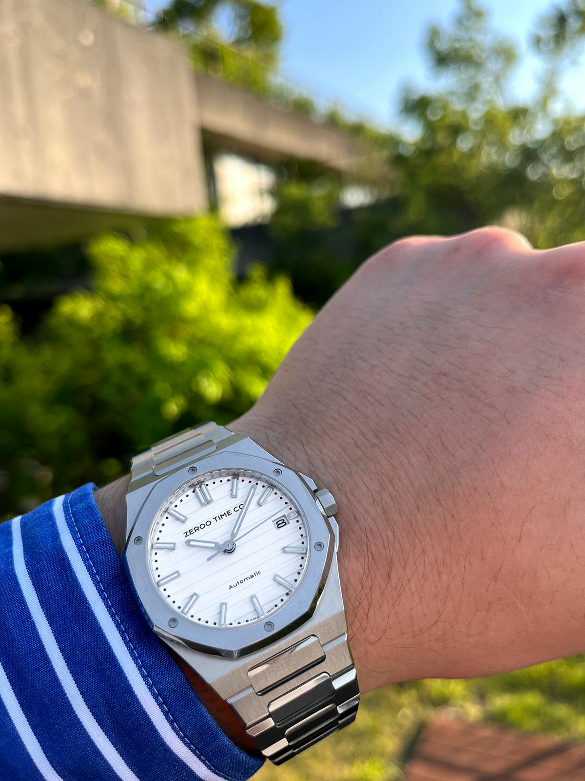 素材には316Lステンレススチールを使用し、見た目の美しさと上質な着け心地を実現するために情熱を注いで製作しました。ZEROOの高価格帯プレミアムウォッチであるT7にも採用されています。