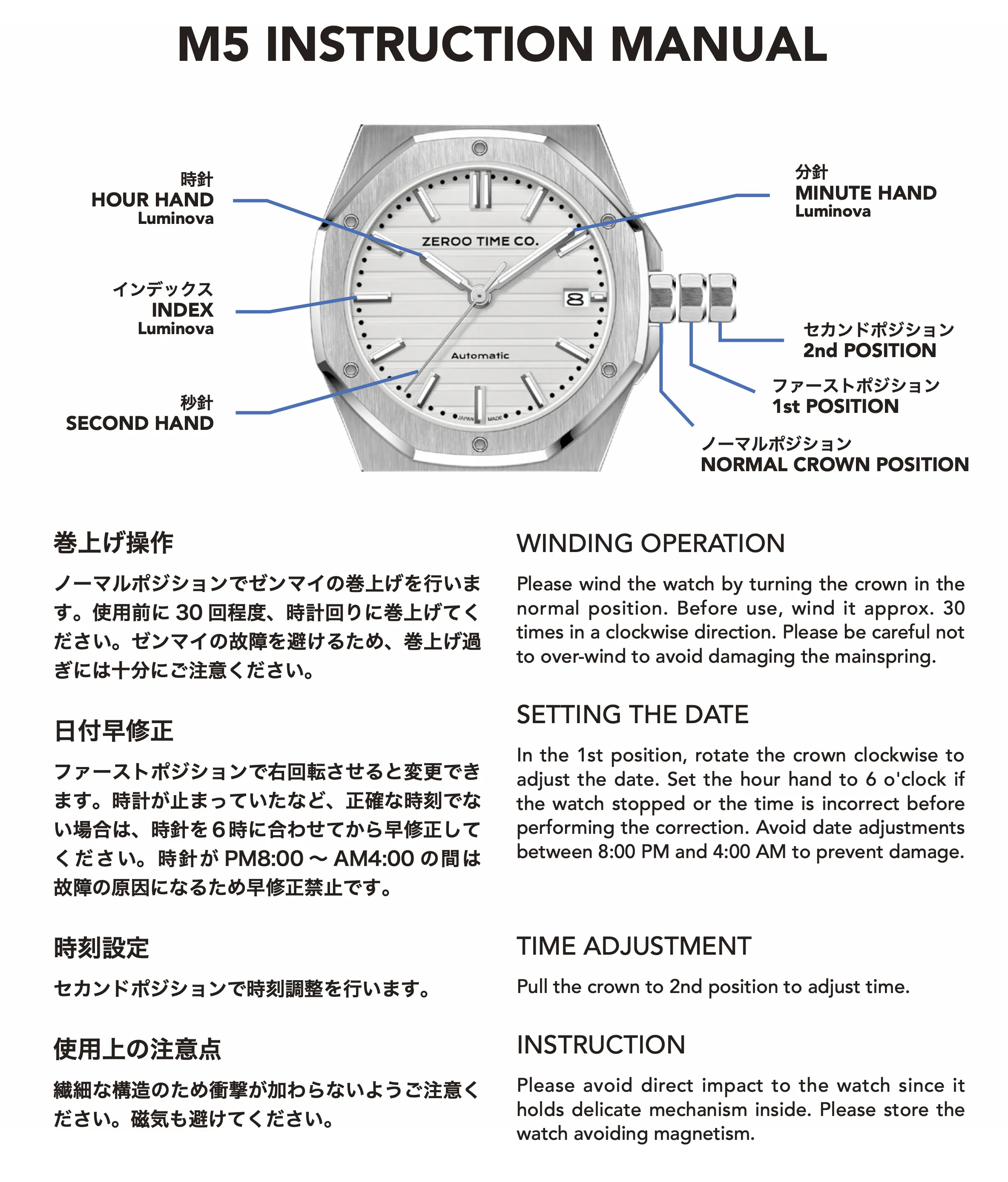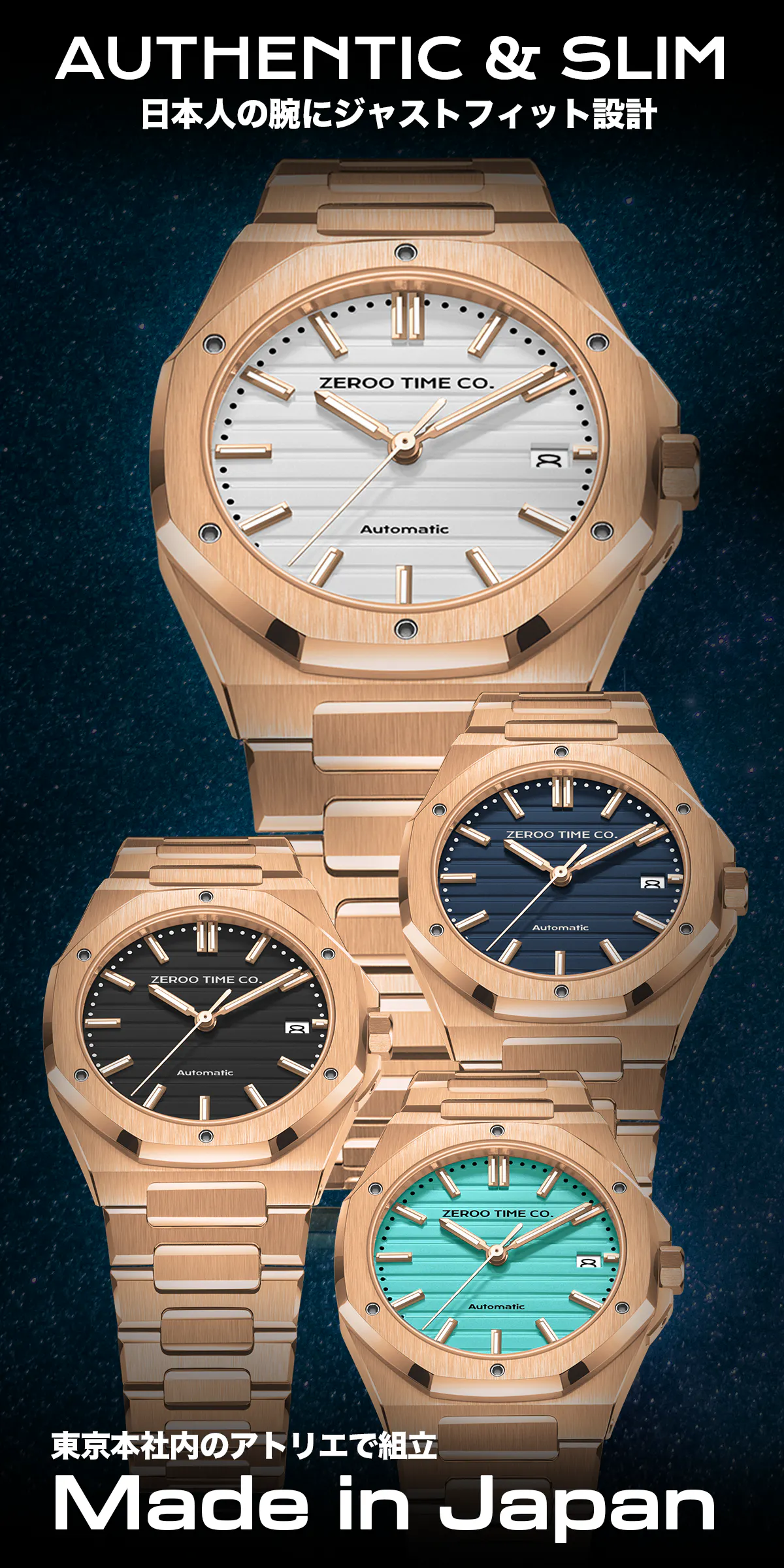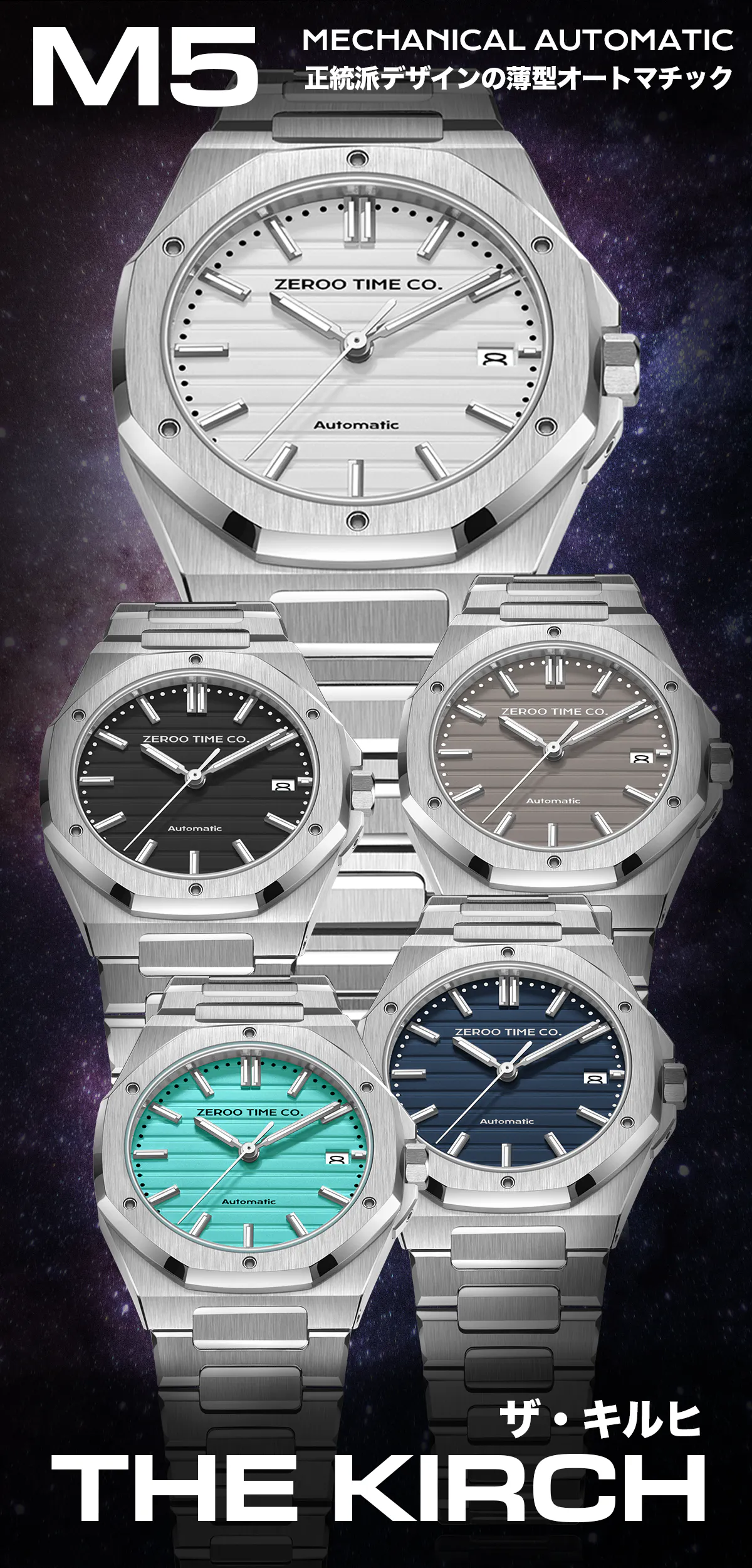 東京発の腕時計ブランドZEROOからメカニカルシリーズ(Mシリーズ)の新たなオートマチックウォッチM5を発表いたします。M5のために開発した薄型でファッショナブルなケースに日本製Miyotaムーブメントを搭載する渾身の一作です。