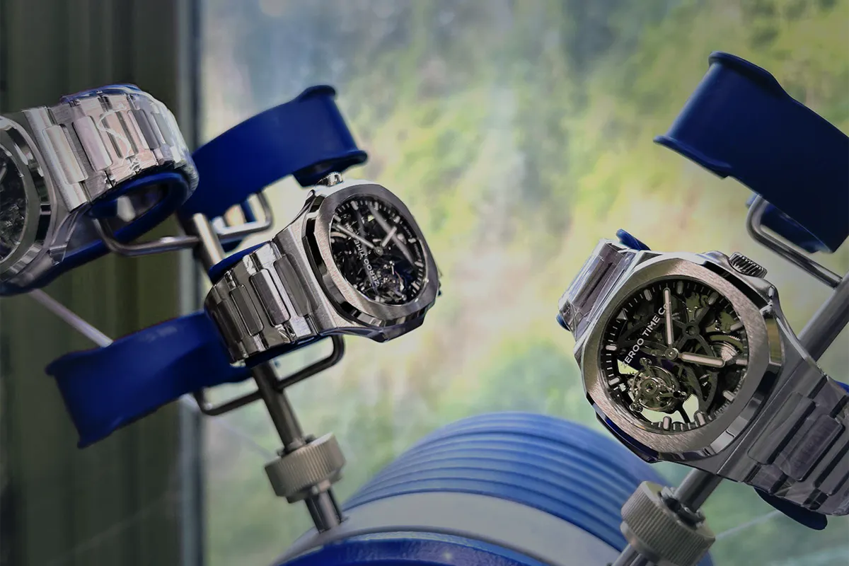 ゼロタイム株式会社は腕時計愛好家であるデザイナーの情熱によって設立されたベンチャー企業です。「ゼロから時計を再構築する」をコンセプトに日本から世界に発信するブランドとしてZEROOを立ちあげました。東京都八王子市を拠点にオリジナル腕時計を企画開発しています。これまでにトゥールビヨン、クロノグラフ、ムーンフェイズ、スケルトンウォッチ等、数々の腕時計を生み出してきました。