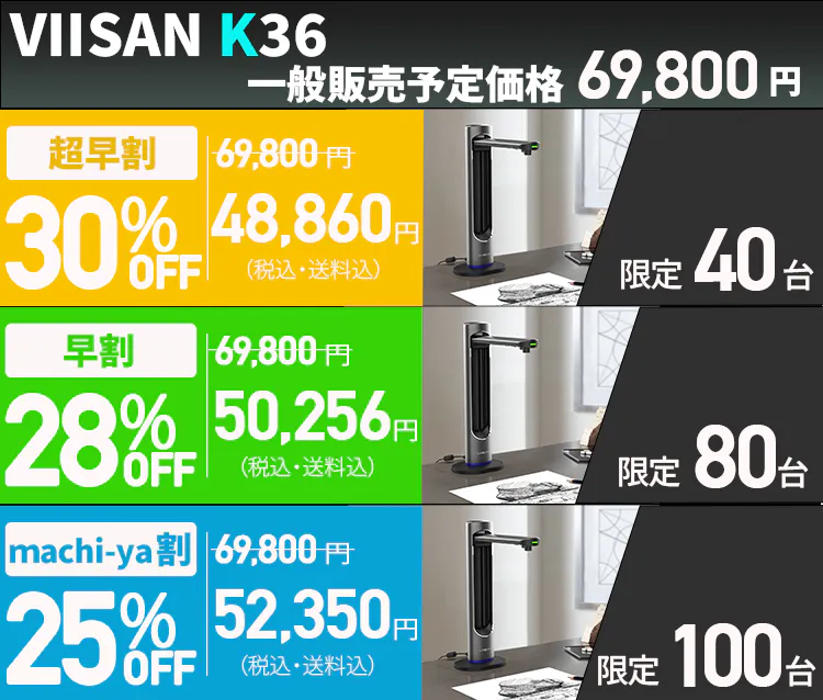 2024/12/02 16:15いつもVIISAN K36を応援していただきありがとうございます。VIISAN K36をご使用いただくにはお使いのパソコンに専用ソフトウェアをインストールしていただく必要がございます。専用ソフトウェア(OfficeCam)のダウンロードについてご案内させていただきます。付属の説明書に記載してある専用スキャニングソフトウェアのURLからソフトウェアをインストールすることが出来ます。またこちらに、Windows用とMac用のダウンロードリンクを添付させていただきますので、よろしければこちらからダウンロードしてください。●Windowshttps://img.viisan.com/en/file/t92/VIISAN%20OfficeCam%20International_V7.2.4.0_20241107.exe.zip●Machttps://img.viisan.com/en/file/t92/VIISAN_OfficeCam_v1.3.0(167).pkg.zip もっと見る【発送開始のお知らせ】VIISAN K36の発送を開始しました!
