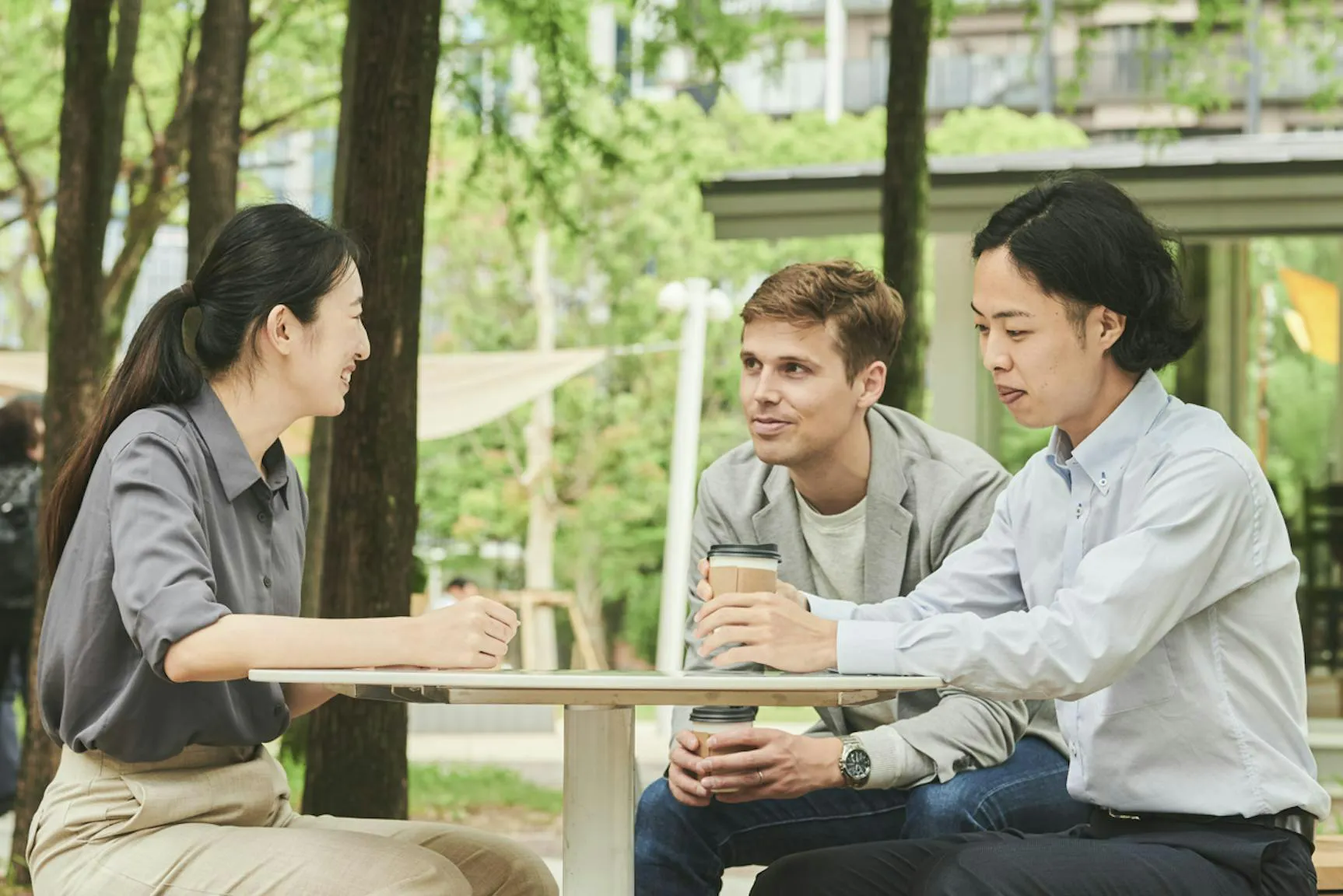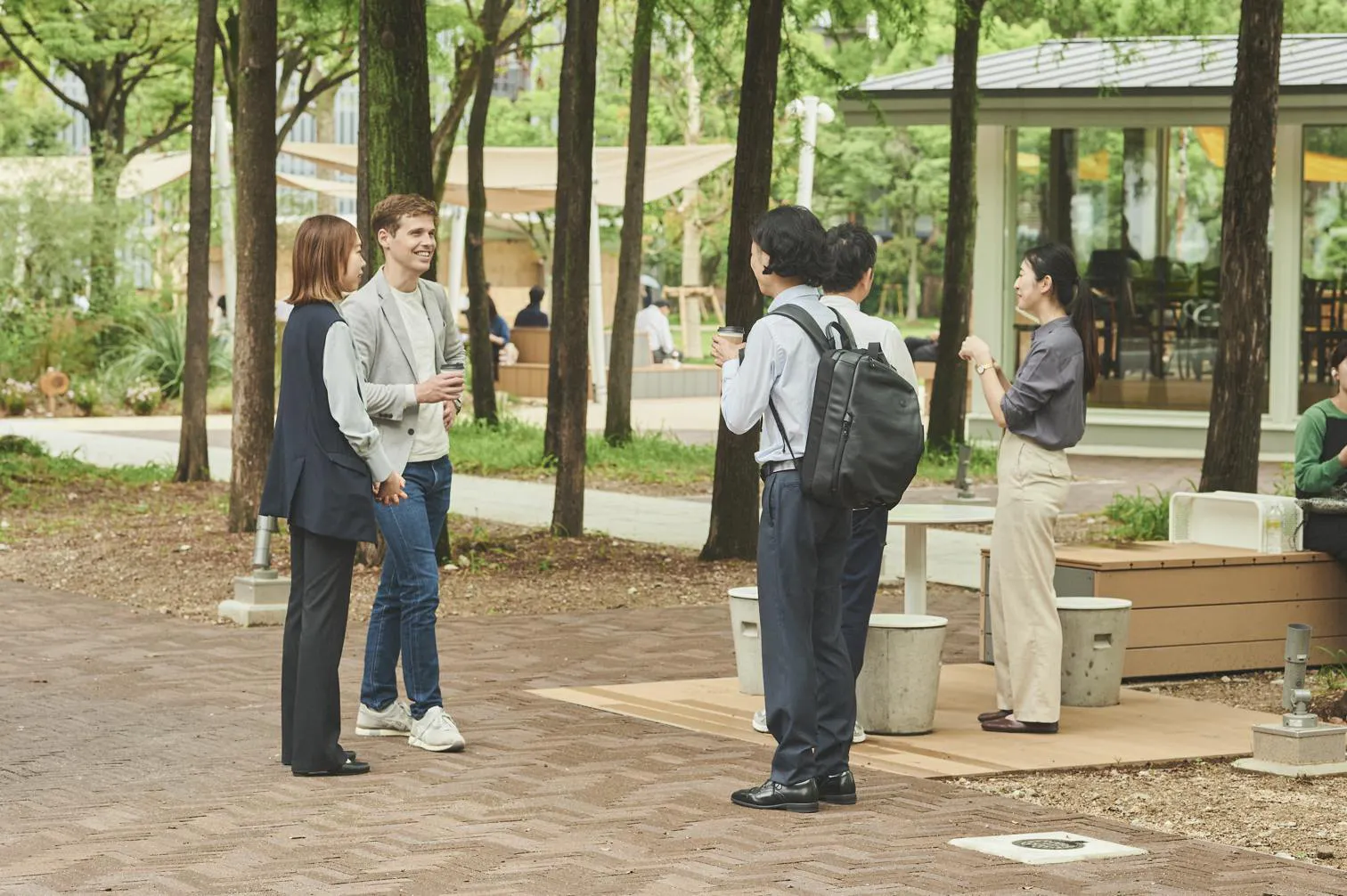 (写真:テラス席で食事を楽しむ人々)