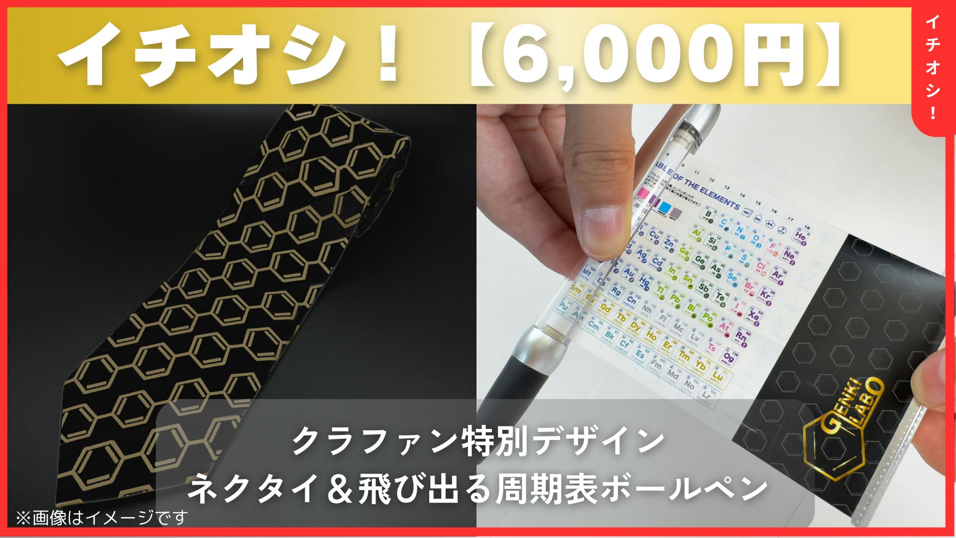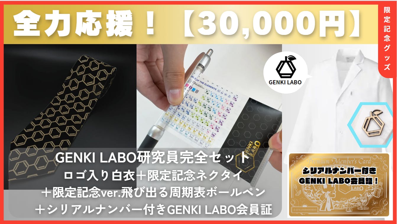 【GENKI LABO研究員完全セット】ロゴ入り白衣+限定記念ネクタイ+限定記念ver.飛び出る周期表ボールペン+シリアルナンバー付きGENKI LABO会員証